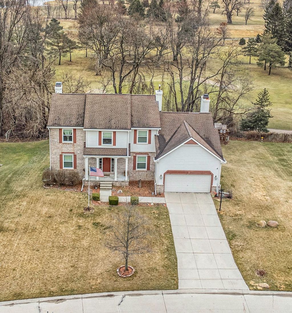 *Inquire regarding the VA assumable mortgage at a rock bottom rate 2.25% interest rate!* Your home dreams can come true in this semi-custom home in often coveted Spring Lake South! Striking curb appeal w/replacement siding & no fuss landscaping leads you into the sun drenched, two-story foyer. Hardwood floors continue to flow throughout the mammoth, island kitchen w/9' ceilings, granite countertops, stainless steel appliances including a pantry & coffee bar. Breakfast nook opens to the vaulted & voluminous great room w/gas fireplace. Formal living & dining rooms, an office/den, large laundry & powder bath complete the first floor. Supersized primary bedroom suite features a rare fireplace and vaulted ceiling, well-appointed bath w/soaking tub, separate shower w/Euro door, two sinks & two, walk-in closets. 3 sizable bedrooms share a neutral, ceramic bath. The piece de resistance is the dynamite & finished, walkout lower-level with tall ceilings & loads of living & storage space including a cedar closet. Its second kitchen overlooks the recreation room with stunning, new LVP flooring & the full bath is a rare find. Numerous, big-ticket updates since 2021 include: Pella triple-pane windows, Trane furnace, water softener, gutters, insulation, soffits, high-efficiency commodes plus an EV charger. Other updates over the years include roof, driveway & more, inquire for complete features. Opportunity knocks in this idyllic setting with unparalleled, elevated yet private golf course vistas. Moments to all major conveniences, schools & I-75. Fussy homeowners have taken great care of this distinctive home with the right address! IDRBNG