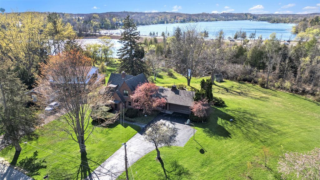Proudly presenting one of Clarkston's crown jewels. Rarely does a home with this winning combination of character, features and location present itself for purchase. This nearly all brick Tudor beauty was constructed in 1922 offering the ultimate in charm yet many desirable attributes that are coveted today. Sited on 28-acre, all-sports, Middle Lake and with captivating, wide sweeping vistas of Deer Lake, too. Plenty of living space starting with the front living room with coved ceilings, a gas fireplace & adjacent sun porch. The circa 1963 rear addition created an explosive family room with a plethora of windows that captures the two parcels that combined yields a 1.81-acre setting. The 2000s improved kitchen features 42" maple cabinets, quality appliances, hardwood flooring opening onto the striking dining room with a wall of classy cabinetry. The first-floor primary suite is a rare find, and especially for this era, and it also overlooks the lake. Its ceramic, ensuite bath and wall of closet space are added bonuses. An extra room on the first floor could be a 5th bedroom or office (the space was borrowed from the garage & could be converted back to garage space if desired). A first-floor mud/laundry room, powder bath and plenty of closet space deliver much modern function. Upstairs are 3 bedrooms, all with hardwood flooring, and a super sweet bath. The oversized, 2 + car, attached garage has plenty of parking & workshop space and the supersized driveway will accommodate many guests. The gently sloping yard to the lake is perfect for sledding. Walking/biking distance to Downtown Clarkston, Depot Park, Clarkston Elementary/Junior High, and moments to all major conveniences & thoroughfares. Clarkston Estates is a neighborhood featuring meandering roads and a wonderfully eclectic blend of homes. The association beach is the cherry on top! This longtime family home has been maintained and cherished for many years and awaits its very fortunate new owners. IDRBNG
