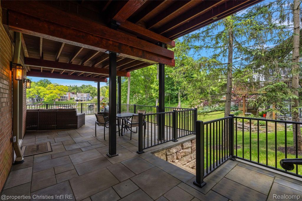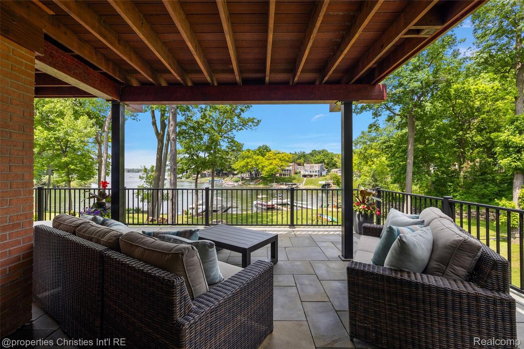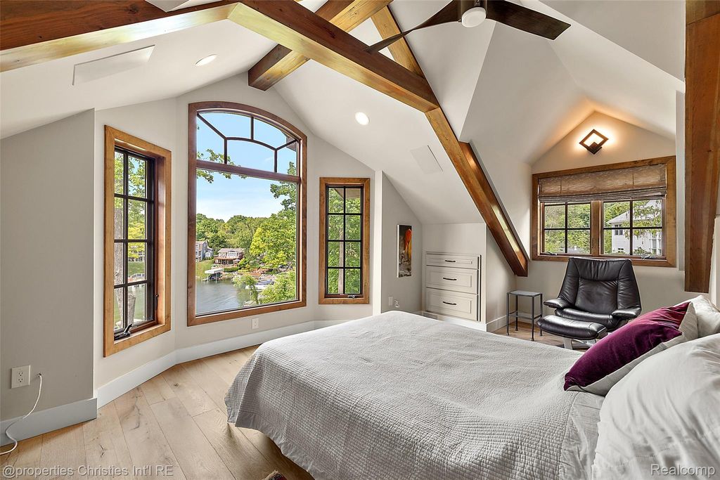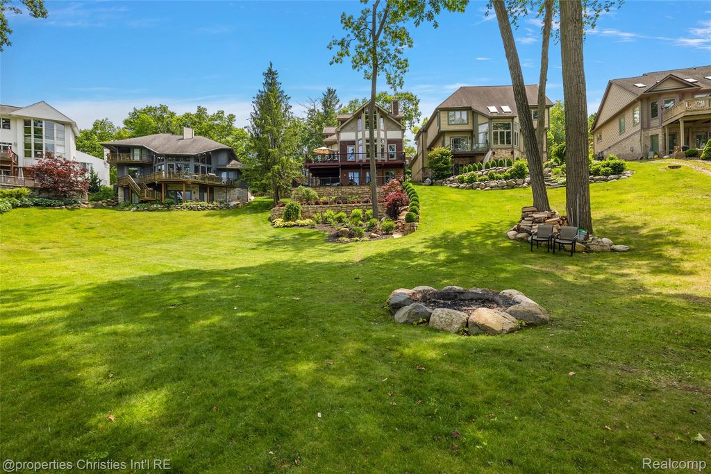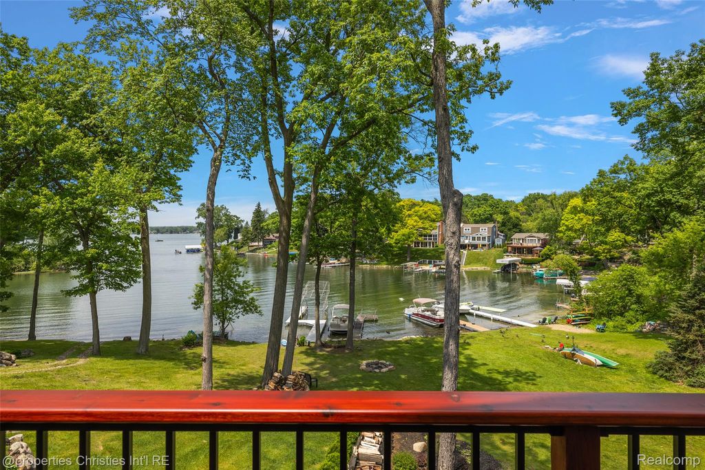 Experience luxurious lakefront living on All-Sports White Lake. From breathtaking year-round sunsets to impeccable custom finishes, every detail has been thoughtfully designed and meticulously maintained. Grand two-story foyer featuring elegant travertine flooring setting the tone for the craftsmanship found throughout. The chef's kitchen is a culinary dream, equipped w/ premium Viking appliances including a 6-burner range, double ovens, built-in refrigerator, and commercial-grade hood and custom cabinetry. Entertain in the formal dining room or relax in the inviting living room w/ panoramic lake views, a cozy FP, and French doors leading to the expansive wraparound composite deck offers the ultimate setting for outdoor entertaining. Main level office/optional bedroom, plus a custom travertine bath w/ new fixtures, copper sink, and rich travertine countertops, add flexibility and sophistication. First floor laundry room features travertine flooring, Chabert Duvall cabinetry and new LG front-load washer/dryer combo. Upstairs, European white oak flooring leads you to a truly remarkable primary master suite with custom fir beams, cathedral ceilings, built-in custom cabinets, bay window, dual custom WIC and limestone trimmed gas FP. The luxurious spa-style ensuite boasts gorgeous cathedral ceilings, double vanity, heated floors, Italian porcelain tile, curb-less walk-in shower, Brizo fixtures, freestanding tub, and Toto fixtures. Two spacious bedrooms and fully remodeled bathroom complete this level. Finished walkout LL features a full kitchen, guest bedroom, remodeled full bath, comfortable family room opening to show stopping multi-level Pennsylvania bluestone patio w/ custom spiral staircase. Professionally landscaped w/over $500k in custom retaining walls, terraced gardens, mature plantings, and lighting making the outdoor space as stunning as the interior. Additional highlights include newer HVAC, freshly stained cedar shake siding, and updated exterior paint.
