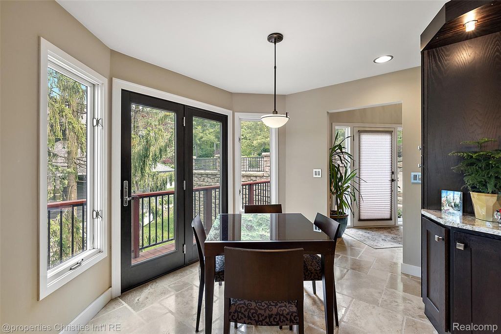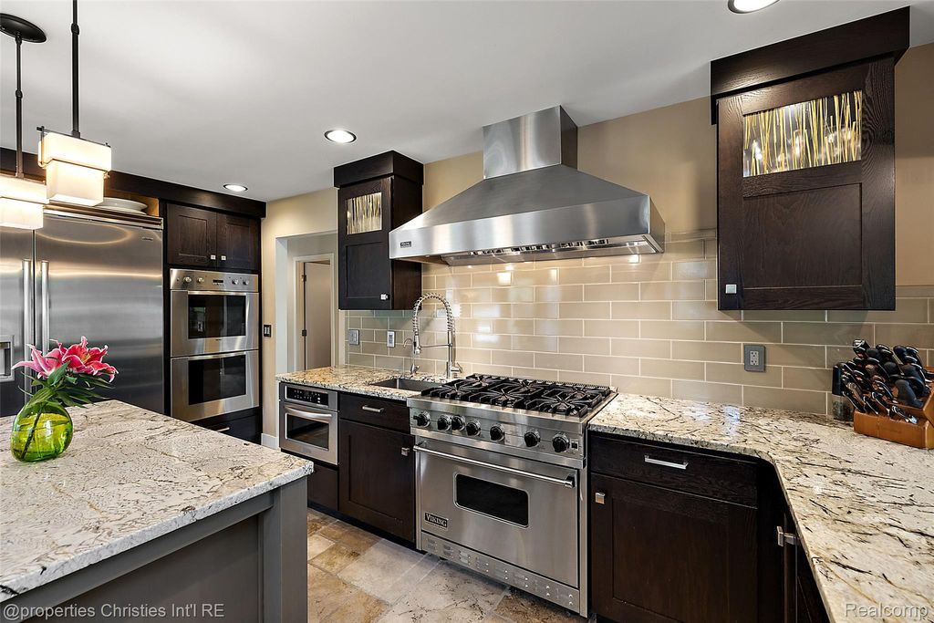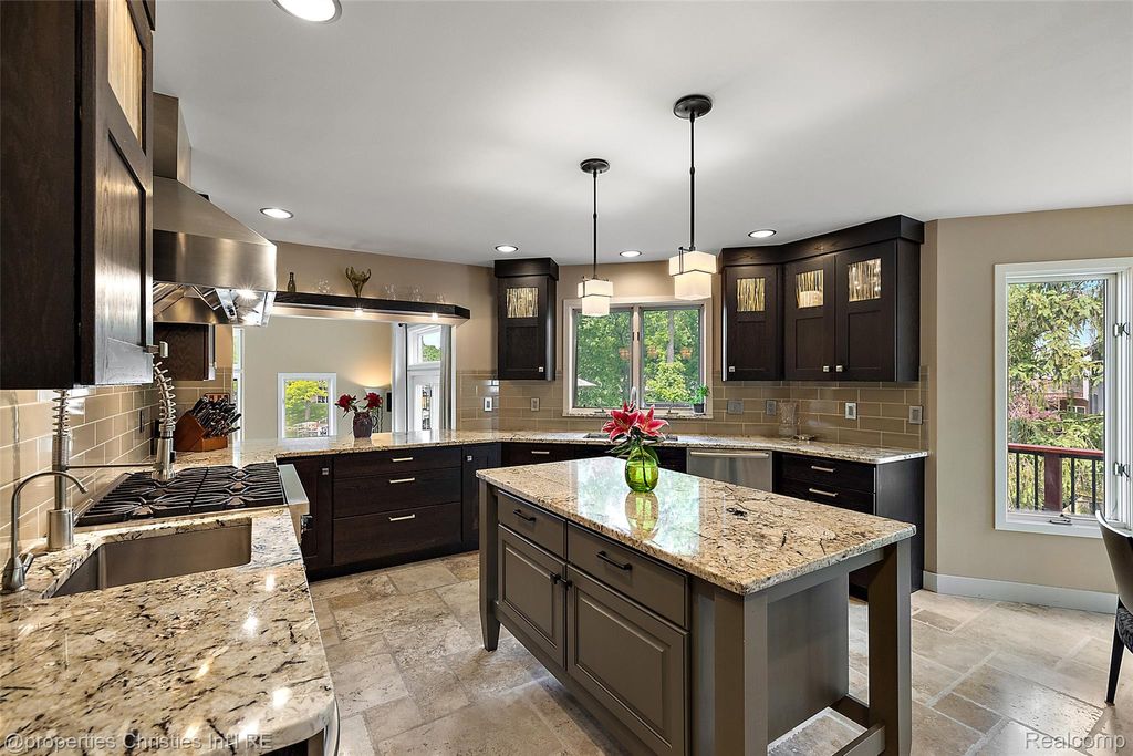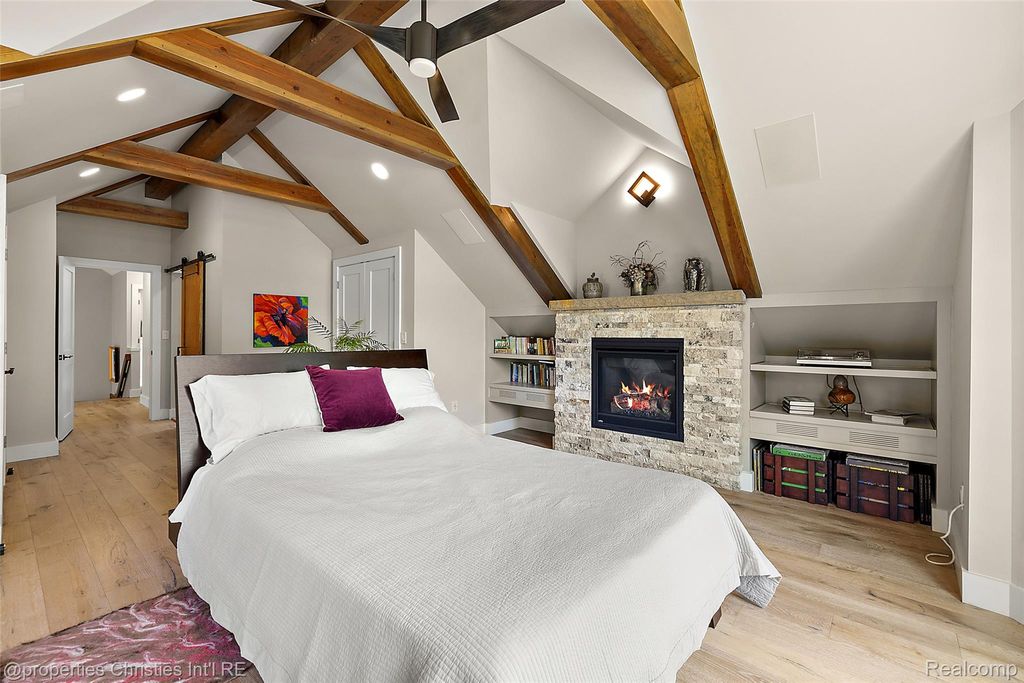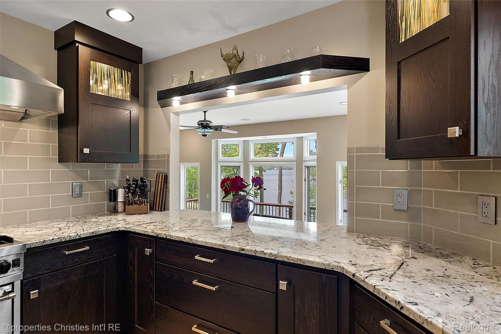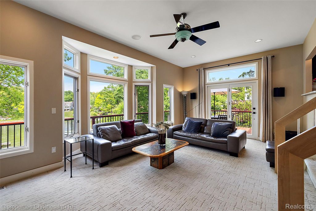 Experience luxurious lakefront living on All-Sports White Lake. From breathtaking year-round sunsets to impeccable custom finishes, every detail has been thoughtfully designed and meticulously maintained. Grand two-story foyer featuring elegant travertine flooring setting the tone for the craftsmanship found throughout. The chef's kitchen is a culinary dream, equipped w/ premium Viking appliances including a 6-burner range, double ovens, built-in refrigerator, and commercial-grade hood and custom cabinetry. Entertain in the formal dining room or relax in the inviting living room w/ panoramic lake views, a cozy FP, and French doors leading to the expansive wraparound composite deck offers the ultimate setting for outdoor entertaining. Main level office/optional bedroom, plus a custom travertine bath w/ new fixtures, copper sink, and rich travertine countertops, add flexibility and sophistication. First floor laundry room features travertine flooring, Chabert Duvall cabinetry and new LG front-load washer/dryer combo. Upstairs, European white oak flooring leads you to a truly remarkable primary master suite with custom fir beams, cathedral ceilings, built-in custom cabinets, bay window, dual custom WIC and limestone trimmed gas FP. The luxurious spa-style ensuite boasts gorgeous cathedral ceilings, double vanity, heated floors, Italian porcelain tile, curb-less walk-in shower, Brizo fixtures, freestanding tub, and Toto fixtures. Two spacious bedrooms and fully remodeled bathroom complete this level. Finished walkout LL features a full kitchen, guest bedroom, remodeled full bath, comfortable family room opening to show stopping multi-level Pennsylvania bluestone patio w/ custom spiral staircase. Professionally landscaped w/over $500k in custom retaining walls, terraced gardens, mature plantings, and lighting making the outdoor space as stunning as the interior. Additional highlights include newer HVAC, freshly stained cedar shake siding, and updated exterior paint.