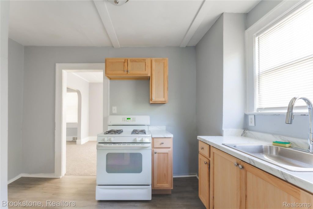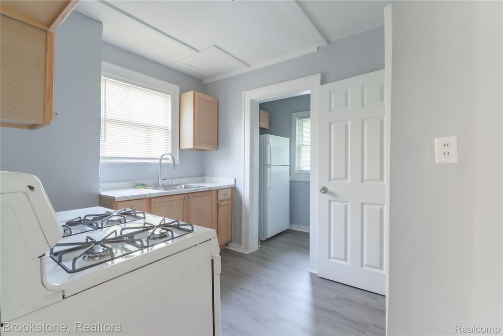 Welcome to this spacious and light-filled 2-story Colonial offering 3 bedrooms and 1 full bath. Freshly painted with new carpet throughout, this home is move-in ready and designed for comfort. The renovated kitchen features brand-new cabinets and countertops, creating a modern and functional space for meal preparation, while the inviting dining room is perfect for everyday meals or hosting guests. The large primary bedroom provides plenty of space to unwind, and both bedrooms are filled with natural light and offer ample storage, making them cozy retreats. The Bath has been refreshed as well and conveniently located at the top of the staircase. Additional highlights include a full basement with washer and dryer hookups, and offering plenty of additional storage space options. Located in the up-and-coming GM Modern Housing Historic District, whether you desire a bit of history or want to be just steps away from the neighborhood playground, park, skate park, and basketball courts. A rare opportunity to own a blend of historic charm and updated convenience in a vibrant community!