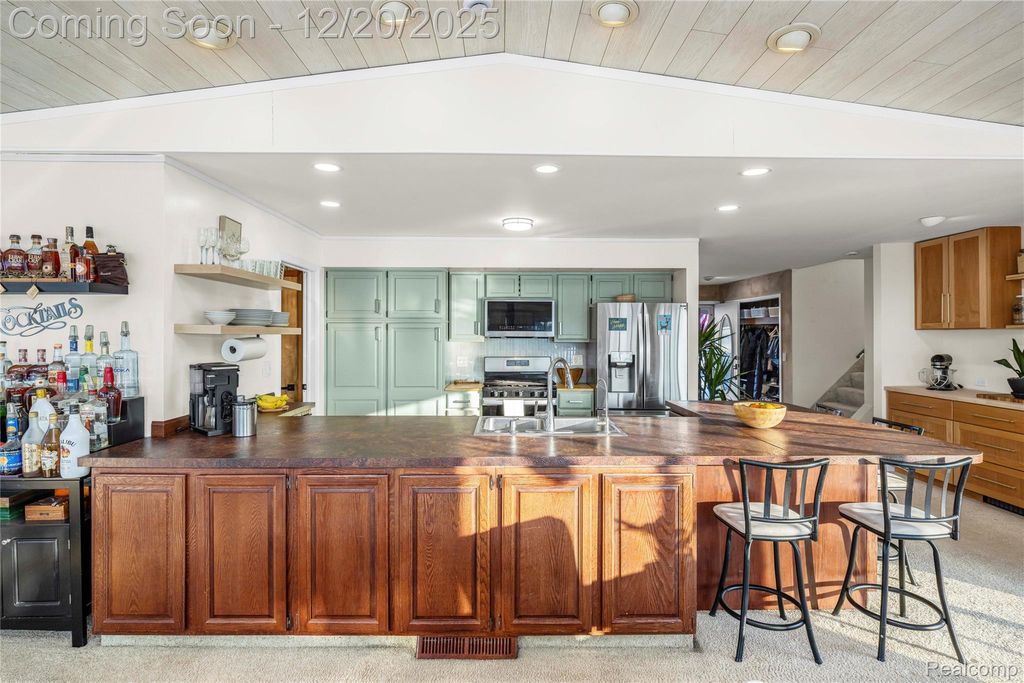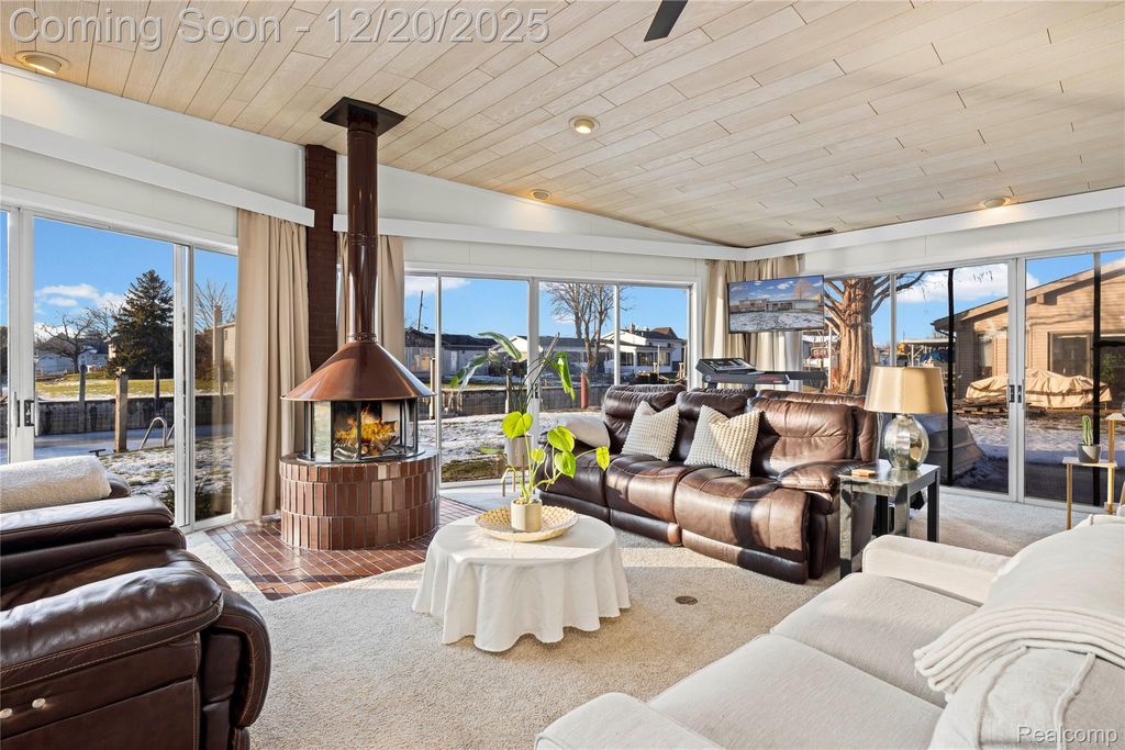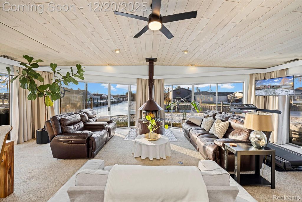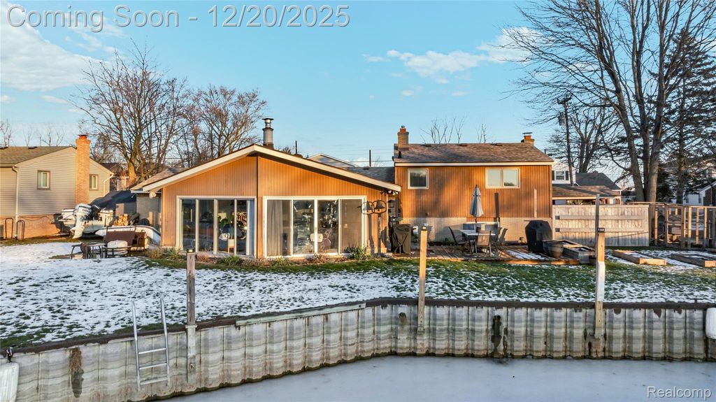 Take a look at this stunning waterfront home! This spacious home offers 3 bedrooms (potential for a 4th), a bathroom with heated floors and a beautiful open concept living space. Step into the bright and airy family room which boasts panoramic waterfront views and floor to ceiling windows throughout, showcasing over 100 ft of seawall. Sit by the cozy retro wood burning fireplace during the chilly months and admire the view! Venture downstairs to see the gym space, office and guest room complete with a built-in Murphy bed and fireplace. Outside you will find a large yard and patio space, perfect for your summer time entertaining needs. This is not your typical canal lot! The canal is deep and clean, allowing for a short drive out to the famous Lake St. Clair. Close proximity to the freeway, allowing for ease of travel and close access to shopping and delicious waterfront dining options. Updated features include new appliances, newer roof, newer furnace, new HWT, reverse osmosis water filtration system, smart curtains throughout the main living spaces, smart thermostat, and a whole house generator that just needs to be hooked up! All this and access to Lanse Creuse School District.