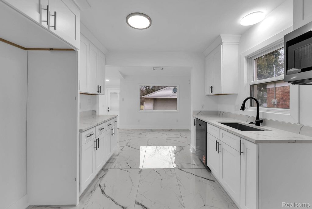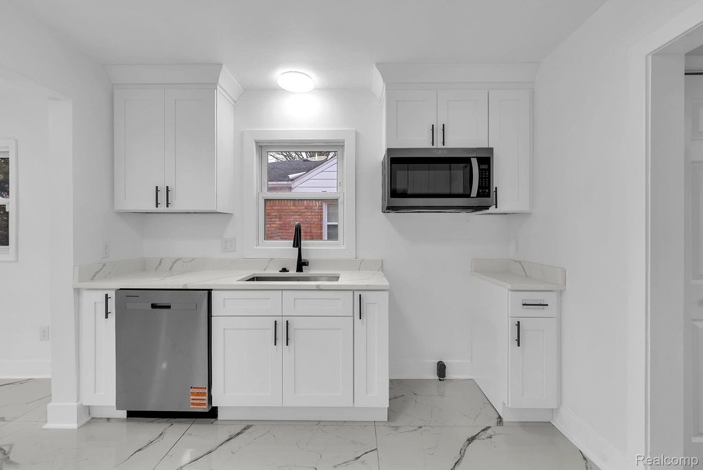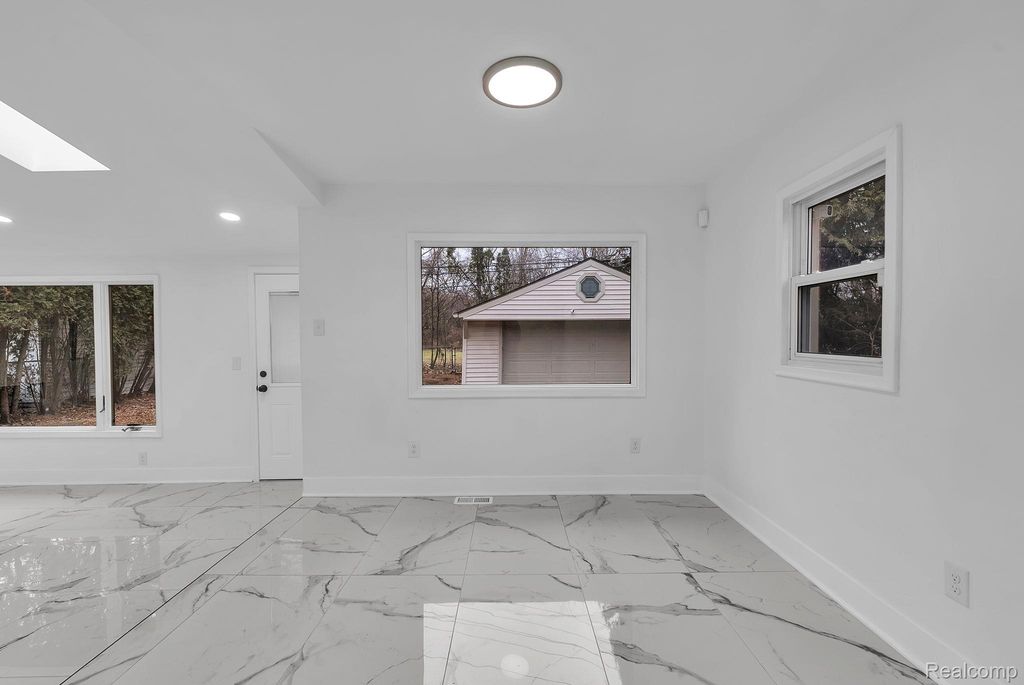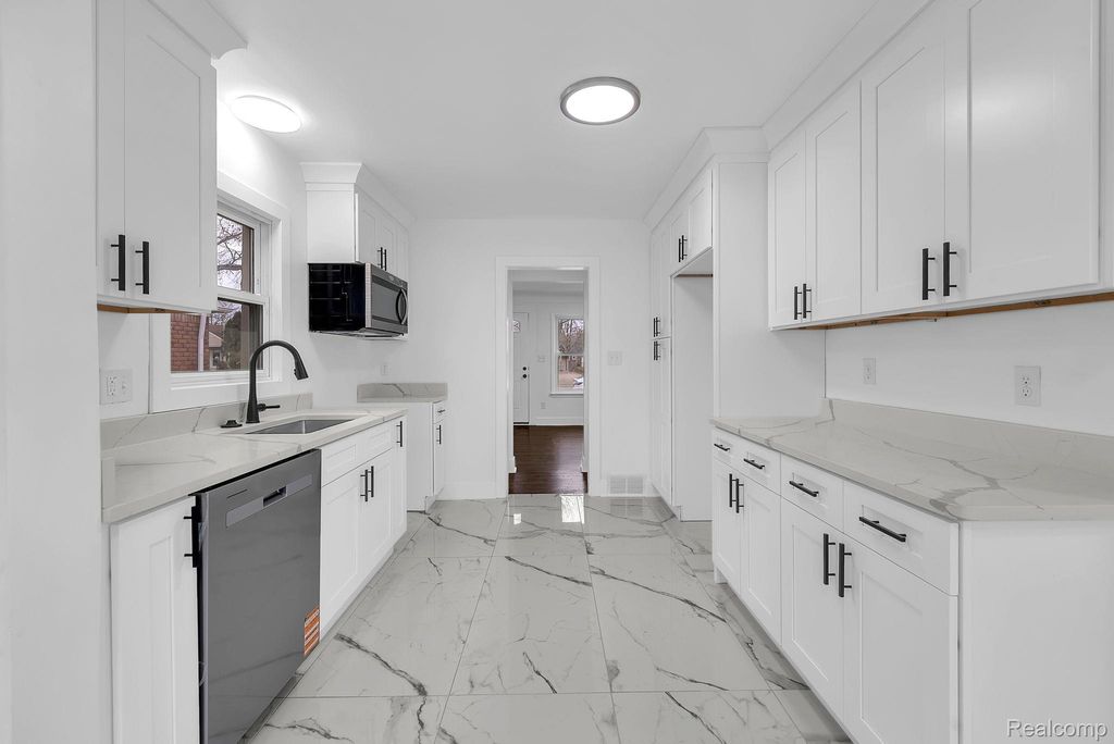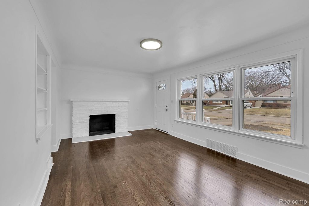Welcome to this fully renovated ranch located in the city of Dearborn, offering 1,258 sq ft of comfortable living space with 3 bedrooms and 1.5 baths. Step into a bright and inviting living room featuring hardwood flooring and a cozy fireplace. The updated kitchen provides ample space with white cabinetry, marble countertops, and stylish hardware for a modern touch. A spacious family room showcases beautiful marble flooring, abundant natural light, and a second fireplace-perfect for relaxing or entertaining. All bedrooms feature hardwood flooring. Freshly renovated and truly move-in ready, this bright and welcoming home is a must-see.