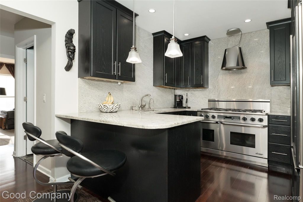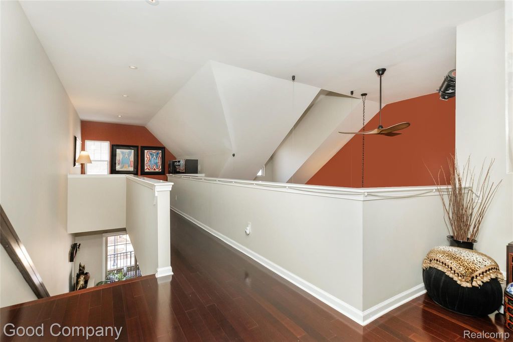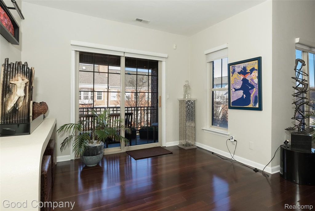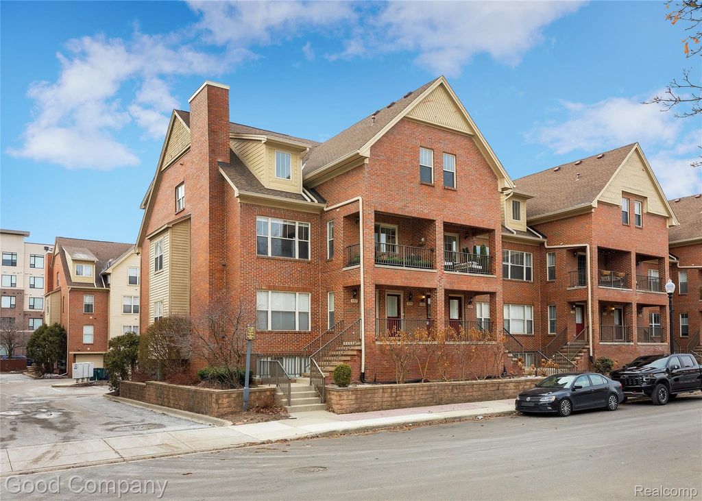Walk to town from this brick townhouse with private entrance! Step inside the foyer and head up to the main living level with Brazilian cherry hardwood floors and 2-story ceilings. The living room is anchored by a river rock gas fireplace and large windows north facing. The large eat in dining area is perfect for hosting and flows effortlessly into the chef's kitchen, with top of the line appliances including a Sub-Zero fridge, Dacor double oven with six burner gas cooktop, Bosch dishwasher, instant hot water at the sink, and sleek granite counters with a full granite backsplash. The main floor also features two spacious bedrooms and a full updated bathroom with a slate walk in shower. Step outside to the private balcony for a breath of fresh air, as well as enjoy the convenience of a dedicated laundry area right on this level! Upstairs, the open concept loft offers a perfect space for a home office, reading nook, or second sitting area overlooking the floor below. The oversized updated primary suite is complete with its own sitting area, a generous walk in closet, and a spa style bathroom featuring a jetted tub, double vanities, and a marble walk in steam shower. The attached garage and mudroom on the lower level add everyday ease, while the end unit location provides extra privacy and natural light throughout the home. Walk to restaurants, shops, grocery store, and gym. Northwood school district. Close proximity to Woodward and I75/696.