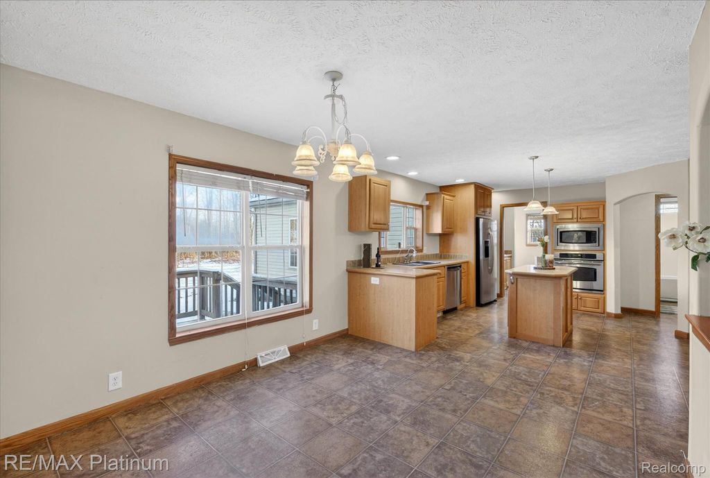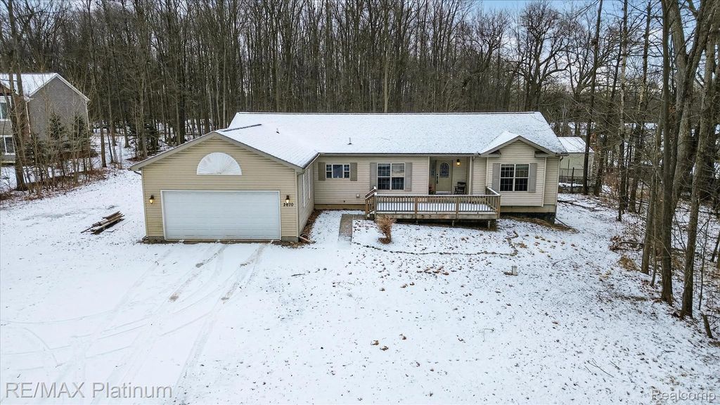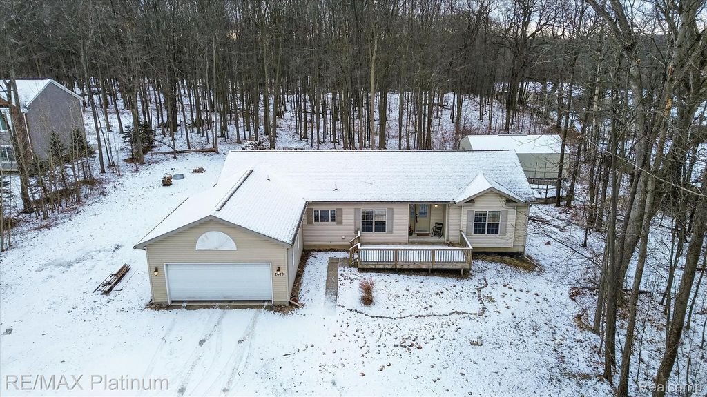 If a peaceful retreat with room to roam is what you're after, welcome home! 2670 E. Maple Rd in Milford Twp. offers 4.63 wooded acres"”plenty of space for your backyard dreams, plus a 32 x 24 pole barn and a roomy 2½-car attached garage for all your toys. Inside, you'll find 1,800 sq ft of ranch living (plus a full 1,800 sq ft basement with daylight and egress window"”so much space, you might need a map! Charming architectural touches like arched doorways and rounded drywall corners add a stylish flair. Every room is flooded with natural sunlight from large windows, making the whole place feel bright and welcoming. Perfect for entertaining, the kitchen features generous cabinets, counter space, a fab island, built-in appliances, a gleaming stainless steel range hood, and easy flow to the living room, front entry, and back deck"”great for gatherings or morning coffee with a view. Storage is no issue here"”the kitchen and laundry rooms are packed with cabinetry and even a handy pantry. Each of the three bedrooms is bigger than average and comes with a walk-in closet, so go ahead and bring your shoe collection! Don't miss the primary bedroom and its spacious bathroom"”seriously, "Wowzah!" is right. With 4.63 acres to play on, you could even start a hobby farm (just double-check the local rules), or simply enjoy being 1 mile from the Huron Valley Trail and MALT trail head, and just 2 miles from Lion Oaks Park, complete with a golf course, sports fields, dog park, and hiking and biking galore. Still want more? You're less than 5 miles from Wixom Habitat Trails, Gunnar Mettala Park, Downtown Milford's Central Park, Proud Lake Recreation Area, and Kensington Metro Park with a boat launch. This home is packed with space, style, and fun both inside and out. Don't let it slip away"”schedule your showing today and see how this special property could be the perfect fit for your next adventure!