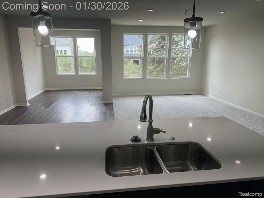 Move-in ready, this beautifully crafted 3-bedroom, 2.5-bath brick townhome in Walled Lake offers modern elegance, functional living, and exceptional convenience. The thoughtfully designed open-concept main level features a spacious kitchen with a large center island perfect for entertaining, complemented by quartz countertops throughout and sleek stainless-steel appliances. A sun-filled first-floor sunroom provides the perfect space for a home office, reading nook, or relaxation area. Upstairs, the private owner's suite includes a generous walk-in closet and a well-appointed en-suite bath, while additional bedrooms offer flexibility for work-from-home needs. The full basement with rough-in plumbing presents endless possibilities for future finishing, recreation space, or added storage. With abundant closets, a pantry, sunroom, and basement storage, this home is designed for effortless organization. Ideally located with quick access to M-5, I-696, I-275, and I-96, and situated within the highly regarded Walled Lake School District, this home combines new construction peace of mind with a prime location close to shopping, dining, and everyday amenities.