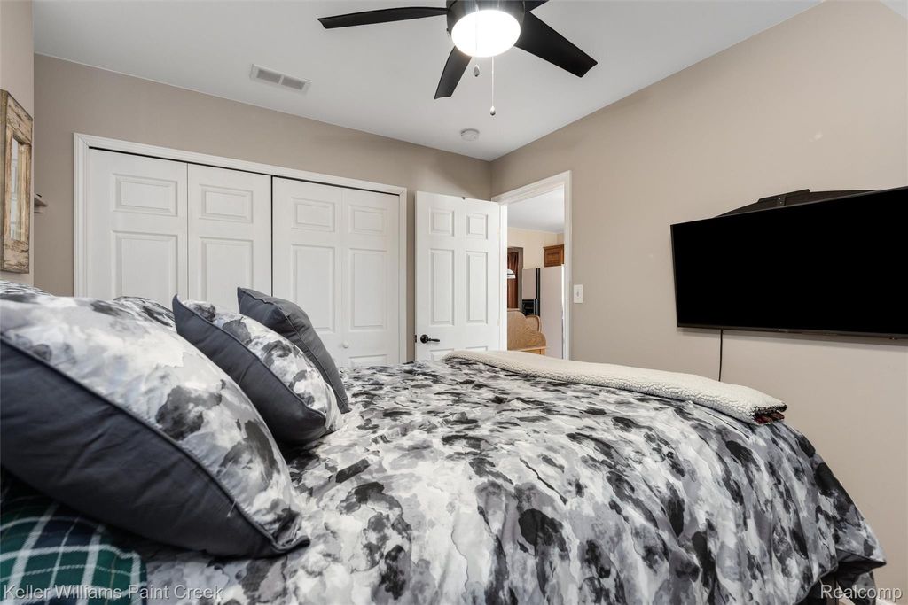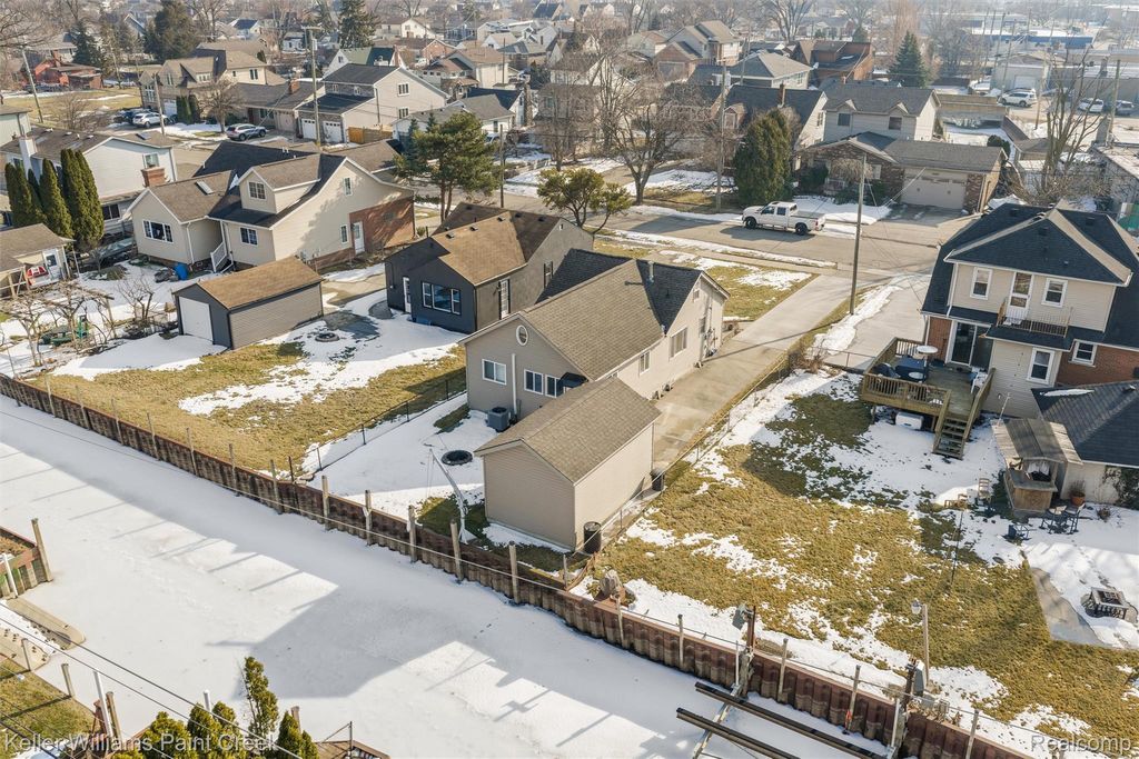 This cozy canal-front ranch is filled with charm and thoughtful updates. A recently poured driveway and beautifully maintained garden beds create inviting curb appeal from the moment you arrive. Inside, classic coved ceilings add character throughout, while the kitchen, breakfast nook, and attached formal dining room feature bamboo flooring that brings warmth and continuity to the space. The sun-filled living room offers comfortable carpeting and abundant natural light, creating a welcoming place to relax. Enjoy year-round comfort with ceiling fans throughout, along with a brand new furnace and central air conditioning, both installed in 2025. Step outside to a partially fenced backyard with a tiled patio and direct canal access just off beautiful all-sports Lake St. Clair. Boaters will appreciate the canal frontage with space for a 24'+ boat, complete with a Davit boat lift. The garage features a roll-up door and extra height, making it ideal for storing water toys and additional gear. A private residents-only waterfront park is located just down the street, and the home is within a short walk of great local restaurants, including a coffee shop and brewery. This well-cared-for home offers the perfect blend of comfort, character, and easy waterfront living.