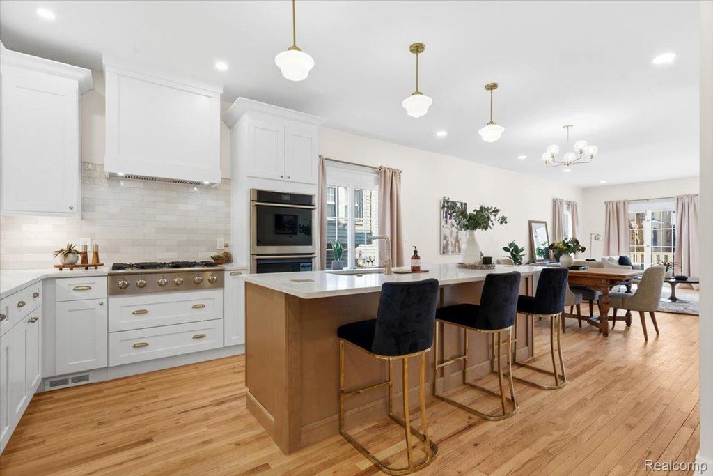 Find that needle in a haystack! Long sought after but rarely found, masterfully crafted AND exploding with attention to detail throughout every single room. Nearly 3700 square feet of finished living space on 3-stories with 5 bedrooms, and 4 full baths. Soaring ceilings, solid doors, striking Zellige tiles, with a sea of rich red oak hardwood floors. Stunning open interior with floor-to-ceiling french doors that bring all the natural light and drama. It doesn't stop there - chef's choice custom cabinetry, tons of countertop space, Calacatta Dardania countertops, and stainless steel appliances. RARE - First floor bedroom suite (guest room, or office) with adjacent full bath. Carefully designer chosen palettes on every floor spice up the interior for fun and function. The 2nd floor offers a spacious primary bedroom suite with dual closets, and bathroom. Convenient adjacent laundry room with storage and folding space. Two additional bedrooms with hardwood floors and shared full bath. Step up into the fully finished 3rd floor with full bath and soaking tub for fitness, a dreamy creative space, fun, extended living - lots of options. Partially finished lower level, ready for your personal touch. Fully plumbed for bathroom and / or kitchenette with direct access to rear yard. Primo location, tucked on a dead end street within Detroit's West Village neighborhood - "a stones toss" to the award winning Detroit Riverwalk, Belle Isle, and downtown proper. Minutes to all major thoroughfares (M-1 - Woodward Ave, M10, I-75, I-94) and DTW airport for super easy access. Move in perfect. One of a kind - once gone there will not be another like it!