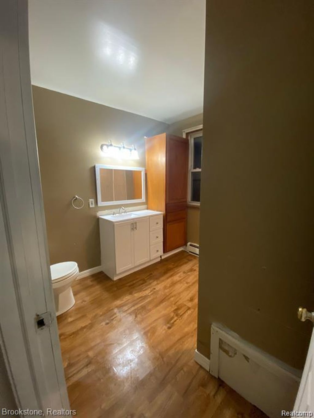Large farmhouse-style 2-story home features 1,755 sq feet, features new carpet and new waterproof vinyl floors! Large first-floor primary bedroom with additional side room to create either a large walk-in closet or primary full bath. 2 generously-sized bedrooms on the 2nd level. Full bath on main floor. Living room leads to the large kitchen with new dishwasher. Tons of room to create just the space YOU desire. Spacious family room across the back of the home, with door wall to back yard. Detached garage is 576 sq feet. Most of the home was freshly painted. New ceiling fans (w/remotes) and new light fixtures in most rooms. Occupancy is immediate. Roof, windows, electric & plumbing updated 2006. Boiler system has been updated by professional 2023. Newer HWH. This home has tons of space and is ready for your personalization! Come make it yours!