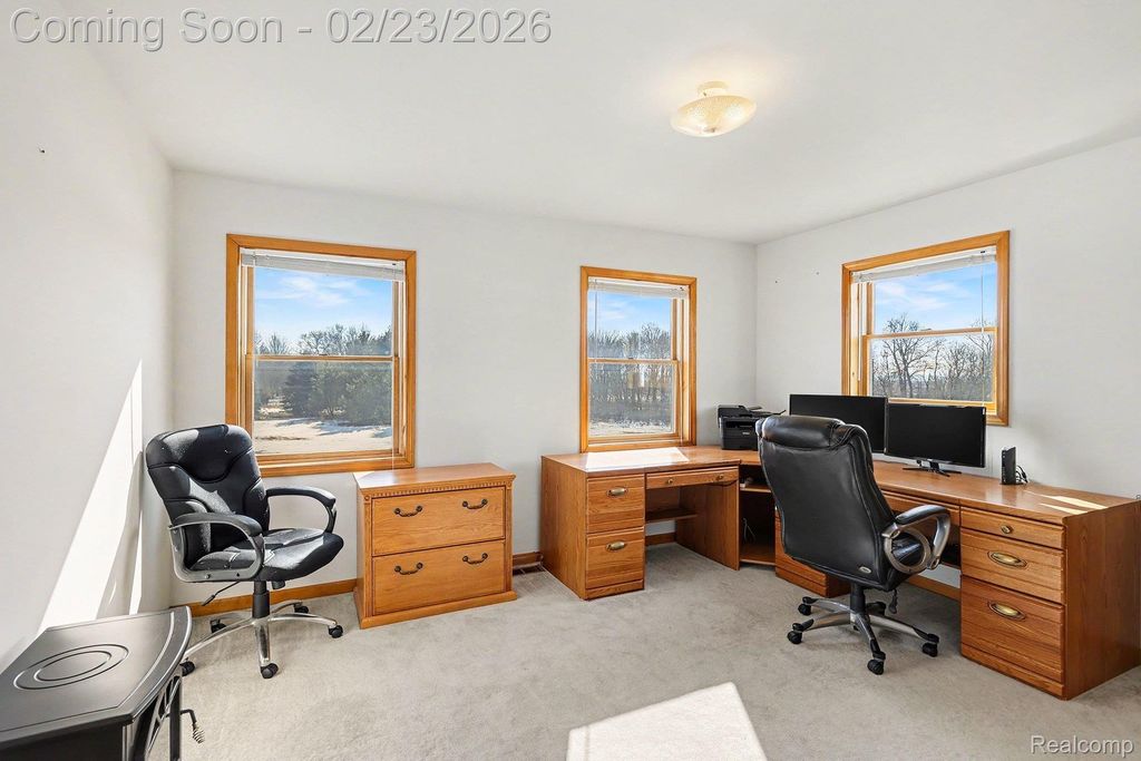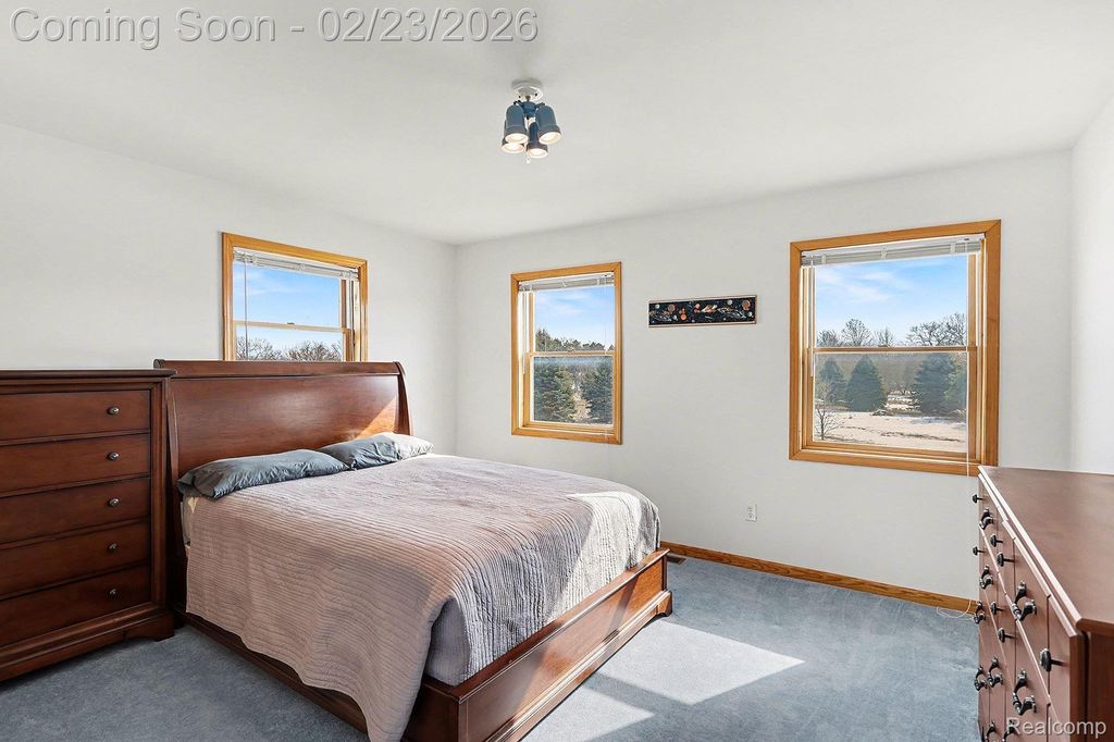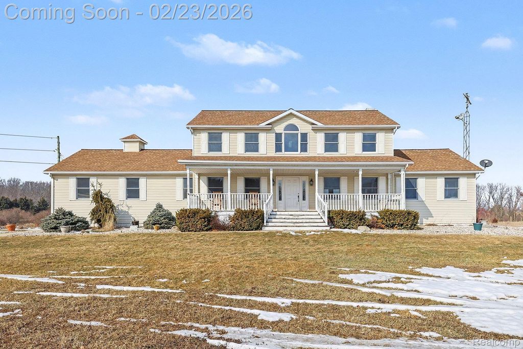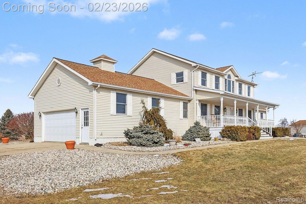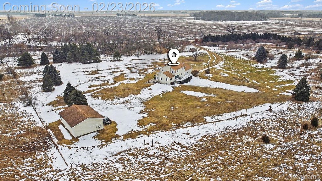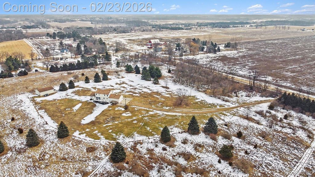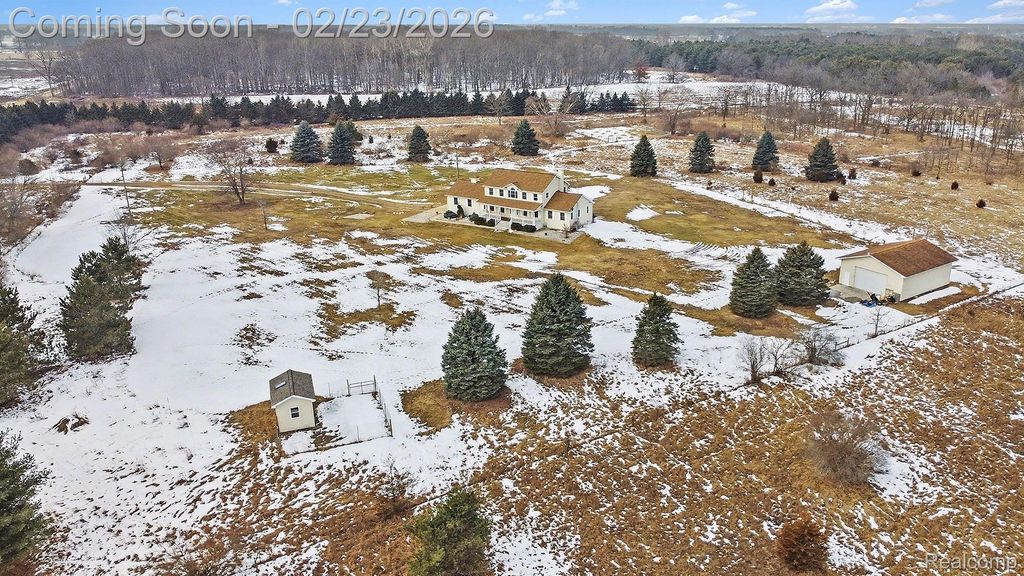 Welcome to this impressive custom-built estate offering space, privacy, and versatility on 32.48 beautiful acres in Mid-Michigan. With over 3,800 sq ft of finished living space, this 5-bedroom, 4.1-bath home is designed for both everyday comfort and entertaining. A grand covered front porch leads into a welcoming foyer with an open staircase to the second level. Upstairs, you will find four spacious bedrooms and two full baths, while the main floor features a primary suite, formal dining room, kitchen, living room, and a half bath. Step out onto the full-width back deck overlooking the peaceful acreage where you can sit and enjoy watching deer passing by. The finished walk-out lower level offers a family room, full bath, and ample storage. Additional highlights include an attached two-car garage, a 30x40 pole barn with a Mini-split heat and a/c unit, perfect for equipment, hobbies, or storage. High-speed fiber optic internet. Hunters will love the established trails with plently of deer activity. Conveniently located less than a mile from a paved road, approximately 25 minutes to Lansing and one hour to Grand Rapids, with access from two roads and set within a fantastic community.