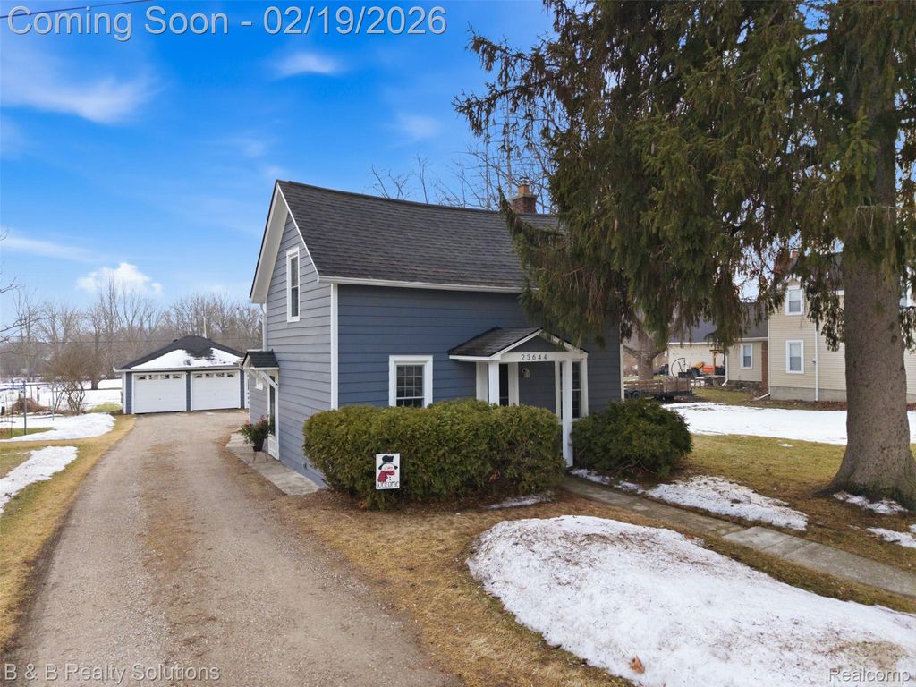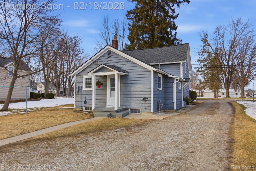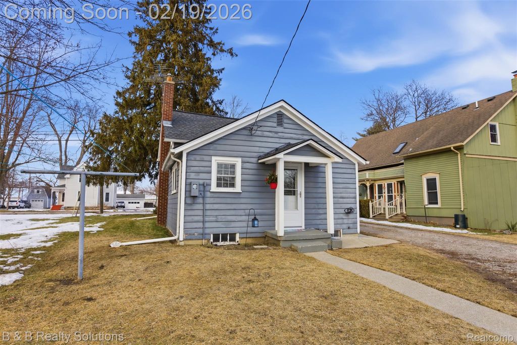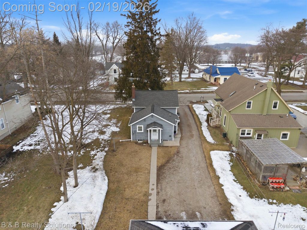 Step back in time with this truly special Armada home, rich in local history & character. Originally owned by John Huff in 1864, purchased for just $3, this home offers a story you simply can't recreate. A rare opportunity to own a piece of Armada's past while enjoying today's comforts. Offering just shy of 900 sq ft, this home features 2 bedrooms and 1 full bath, with a possible 3rd bedroom or flex space upstairs. Situated on a deep 0.59-acre lot, the setting is truly special with township-owned public land behind the property, protected by an easement and not buildable, offering added privacy & peaceful views. Exterior highlights include cedar wood siding, Sunview vinyl windows in overall good condition, newer Andersen storm doors (within the last 5 years), a detached 2-car garage, & a shed for additional storage. Fencing is allowed within the village. An above-ground pool stays, complete with a dedicated circuit breaker. Inside, the home features PEX plumbing updated approximately 7 years ago, 100-amp electrical with circuit breakers, blown-in insulation, and city water. Dining area flooring was updated in 2000. Appliances include refrigerator (2019), oven/range (2020), plus washer and dryer, all included. Major mechanical updates include a newer roof in 2014, hot water heater (2020), and a main water line replaced with copper in 1996. This home blends timeless character, meaningful history, & small-town charm. A truly unique opportunity right on Main Street in Armada.