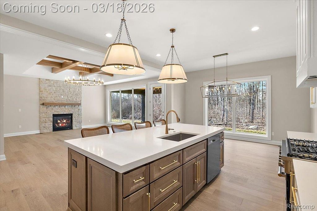 MOVE-IN READY... New Construction in the highly sought-after Villas at Veridian - Lot #34! This beautifully designed 3,080 sq ft Ranch with upper-level loft offers 4 bedrooms, 4 full baths, and 1 half bath with quality finishes throughout. The open-concept layout is ideal for both everyday living and entertaining. The spacious kitchen features a large island with seating, quartz countertops, soft-close cabinetry, Frigidaire Pro Series stainless steel appliances, and a generously sized walk-in pantry for excellent storage. The great room flows seamlessly to a covered patio, extending the living space outdoors. It showcases high ceilings, 8-foot interior doors, wood beam accents, and a stone fireplace. A dedicated office/library with detailed trim work offers a refined work-from-home space. The upper-level loft provides additional flexible living area. The primary suite features a walk-in closet and a spa-like bath with double vanities, a freestanding tub, a separate shower, and quartz surfaces. A spacious laundry room with a window overlooks the beautiful courtyard, bringing in natural light. The finished basement includes a wet bar, a full bathroom, and an additional room with a closet"”perfect for a home gym, guest space, or flex room"”providing extra living and entertaining space. Landscaping includes sod, front landscaping, and sprinkler system, all maintained by the association for low-maintenance easy living.