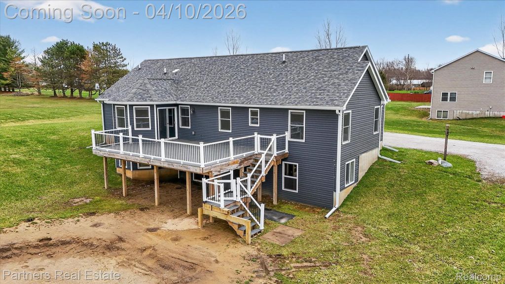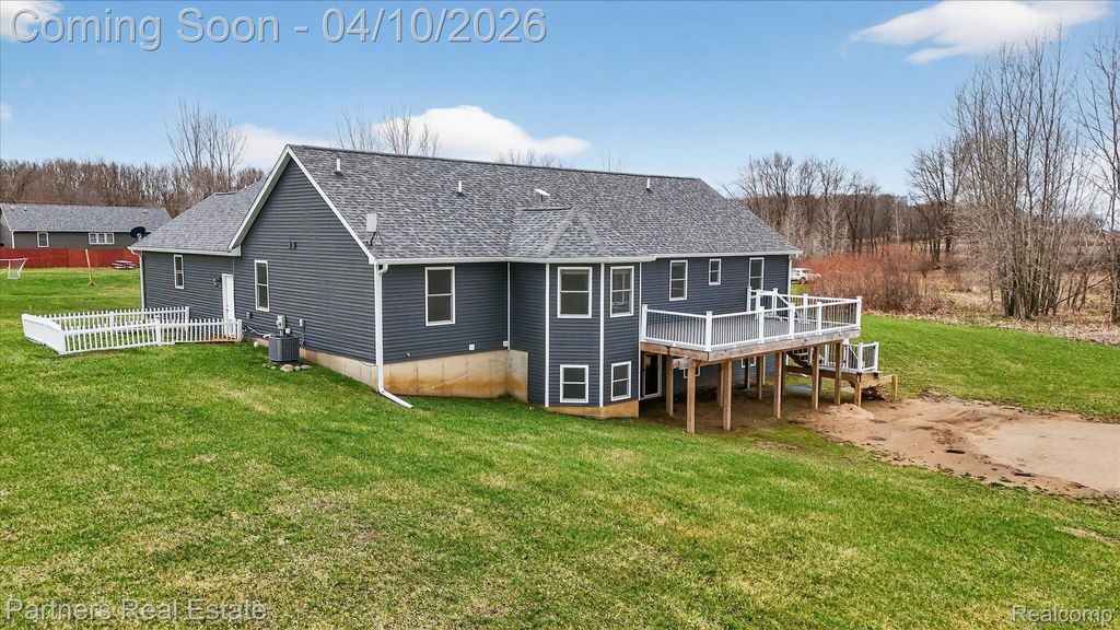 Open House this Saturday, April 11th, 10 AM to 12 PM. Get excited for this beautiful modern Ranch home in a quiet country setting! Built in 2021, this move-in-ready Fowlerville home offers 3 Beds, 3.1 Baths, a 3 Car Garage, a finished walkout Basement and a huge Trex deck on 0.75 peaceful acres. Step into your open-concept main floor with a vaulted ceiling, showcasing a large Living Room with LifeProof flooring which opens to your Kitchen and Dining Room. The Kitchen features stunning white oak cabinets, high end black SS appliances, granite countertops, an island and a pantry! The Dining Room has a glass slider that opens to the gorgeous Trex deck. The Primary Bedroom Suite has it's own wing of the house and features a massive bedroom, two walk in closets and a Full En-suite Bath. The Laundry Room is next to the Primary for convenience and has newer extra large capacity washer and dryer. The Half Bath is centrally located on the main floor. On the other wing of the house there are two Guest Bedrooms and a Full Bath. All three main floor Baths feature granite countertops and porcelain tile. The finished walkout Basement has your third Full Bath, beautiful epoxy floors, lots of windows for natural light and a wide open floor plan with a built in bar for entertaining. The attached 3-car Garage is insulated and drywalled and has epoxy floors. Immediate Occupancy.