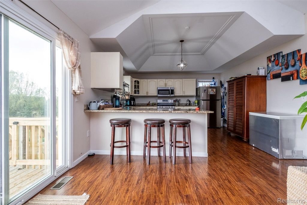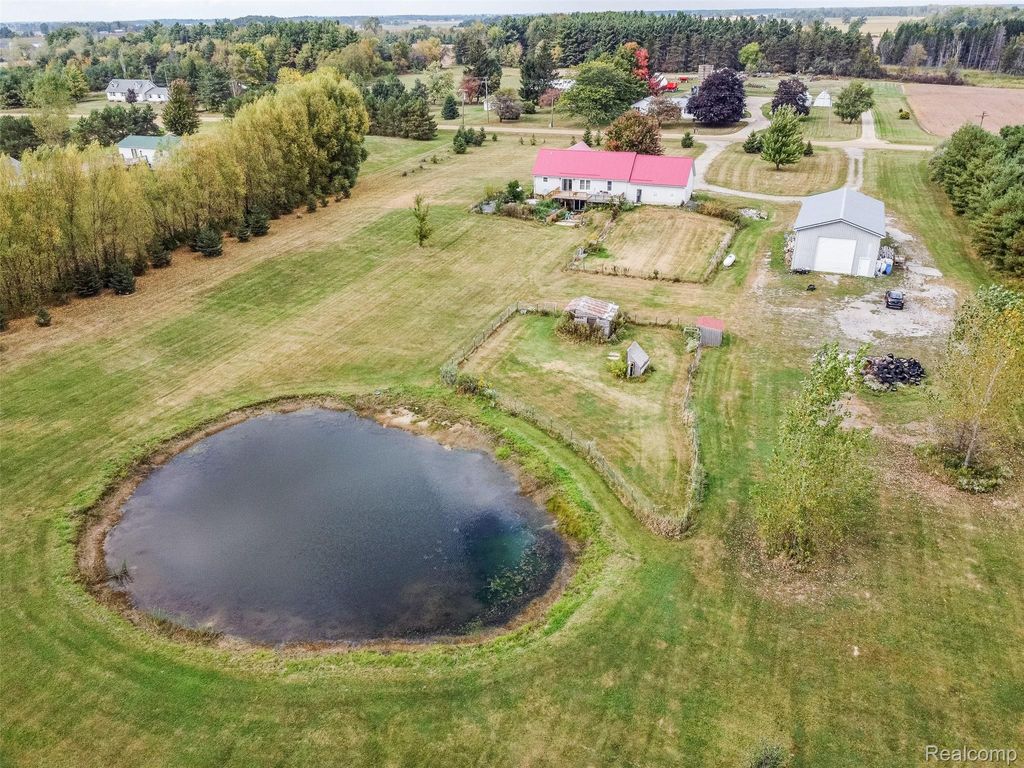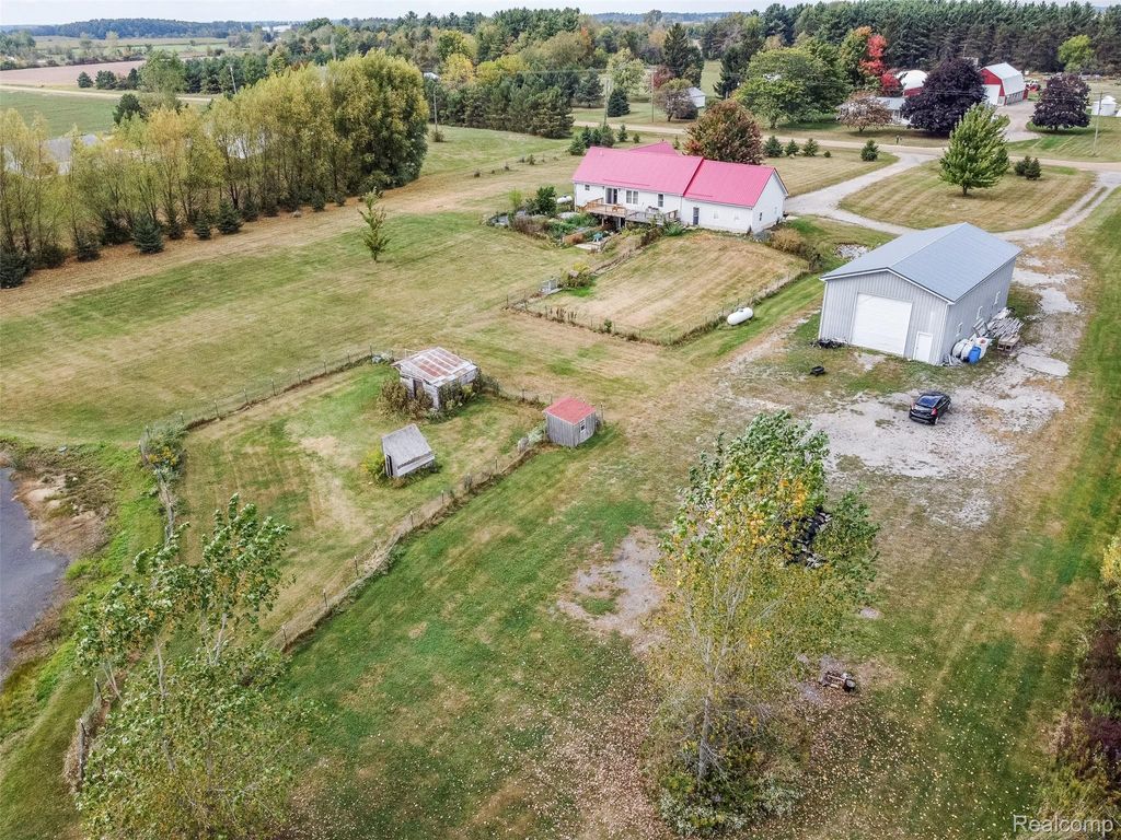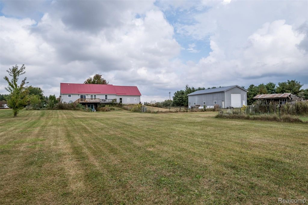 Renovated country retreat on 5 acres in Brown City! New metal roof, new windows, and fresh paint. Updated kitchen with granite tops, laminate flooring, and a newer full set of stainless steel appliances. Refreshed primary suite. New Deck overlooks sunset and pond, a beautiful garden, and a scenic pond. New power generator and water filtration system. Oversized pole barn for toys, tools, or projects. Walkout basement. Peaceful setting with modern updates"”move-in ready.