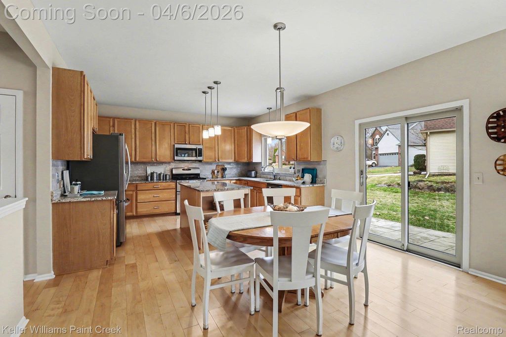 Immaculate and beautifully decorated, this gorgeous colonial in the heart of Round Tree is a true stunner. You'll love the easy rhythm of the neighborhood, where life feels steady and settled with a quiet kind of comfort we all crave right now. From the moment you step inside, it just feels right"”a cozy den on one side, a dining room on the other, both wrapped in calm neutral tones with the warmth of hardwood floors underfoot. Nine-foot ceilings throughout the main level create an airy feel, while sunlight pours in through an abundance of windows. The kitchen naturally becomes the center of the day"”morning coffee at the large island, backpacks spread across granite counters, and the gentle hum of daily routine unfolding in the breakfast nook. A new doorwall leads out to a spacious patio and backyard, ready for summer playdates and easy evenings around the grill. Up the double staircase, the primary suite feels tucked away and calm, featuring a cathedral ceiling, a spacious walk-in closet, and a spa-like bath designed for slowing down at the end of the day. Three additional bedrooms, each with ample closet space, adapt easily over time, while the second bath offers a clean, modern feel. The expansive unfinished basement is full of potential, ready for whatever comes next. Beyond the home, nearby trails lead toward Bald Mountain, inviting long walks, bike rides, and weekends spent outdoors before heading into downtown Lake Orion for the evening. With close proximity to the middle and high school, and served by Lake Orion schools"”Pine Tree Elementary, Scripps Middle, and Lake Orion High"”this home supports a lifestyle that feels steady, connected, and easy, with convenient access to expressways, shopping, and everyday essentials. More features in docs! Seller intends to begin reviewing offers after 4/9.