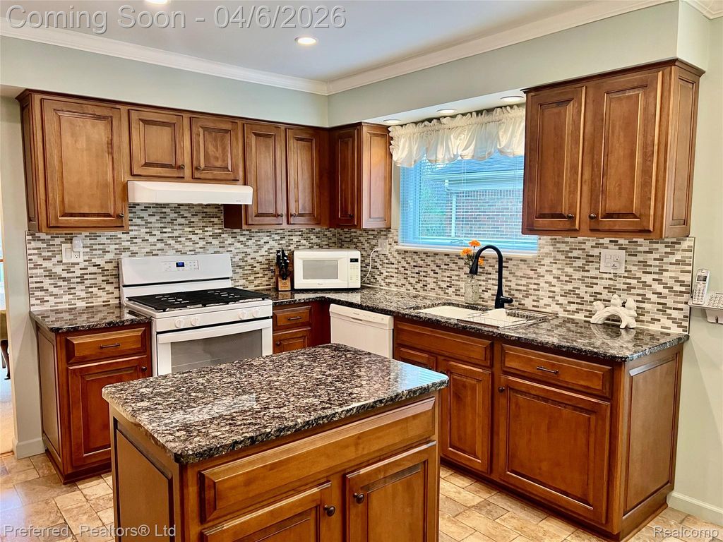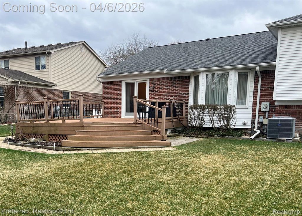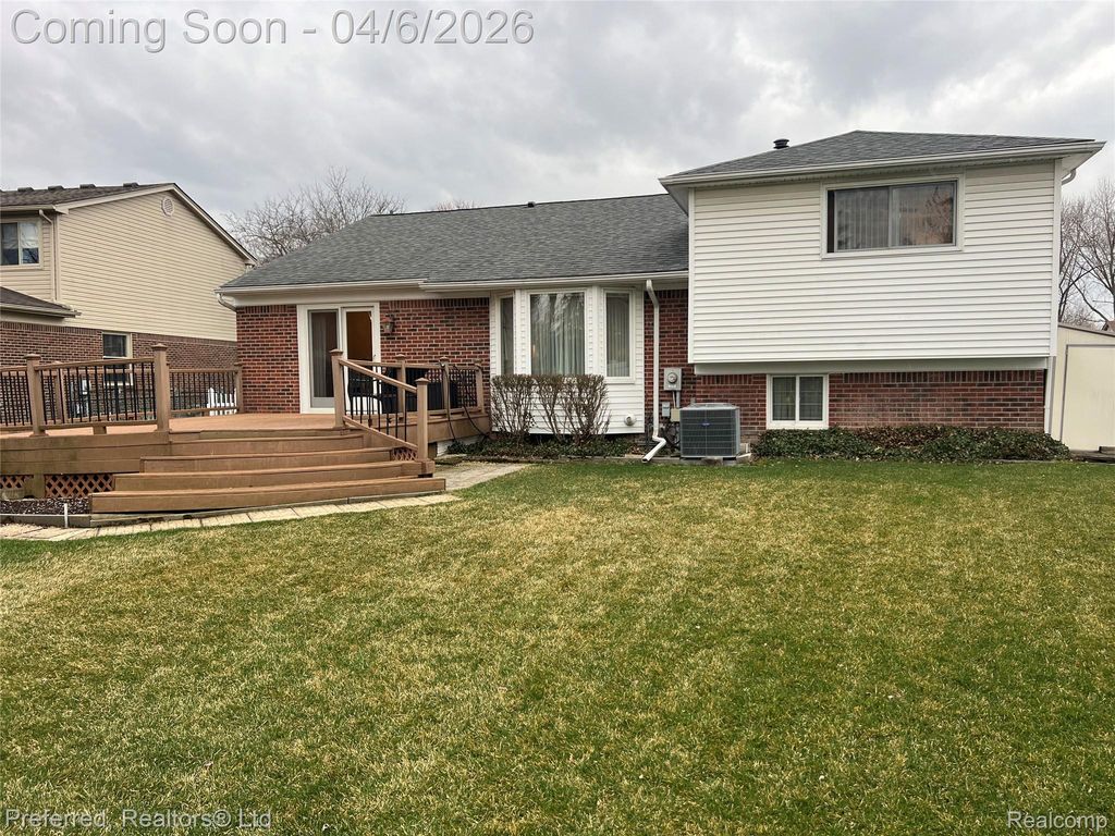 Popular Mayfair Village! This is a location you won't want to miss! Inviting Foyer with Engineered Hard Wood Floors opens to Spacious Formal Living Room with Bay Window, Formal Dining Room with Door Wall to Trex Deck Overlooking Large Back Yard, Great for Family Entertainment. Beautifully Updated Kitchen Featuring Granite Counters and Ceramic Backsplash, Ample Cabinets and Center Work Island. Breakfast Nook with Box Window Fills this Space with Sunlight. Crown Molding, 6 Panel Doors and Recessed Lighting Throughout. Spacious Family Room with Updated Fireplace. 4 Nice Sized Bedrooms, Updated Main Bath with Tall Double Vanity, Ceramic Shower & Floor. Primary Bedroom offers full wall Closet. Finished Basement with Bonus Room Perfect for Kids Play Room. (currently used as non conforming bedroom.) Laundry and two Rooms for Ample Storage Space, Wood Built In Storage Shelves, Glass Block Windows. 3rd Full Bath in Basement. All Appliances in Home are Included. Furnace 2016, Central Air 2024, Sprinkler System Front & Back Yards. Hulsing Elementary School and East Middle School. Close to Downtown Plymouth and its many festivals, and restaurants. Schedule your Showing Today and make it yours before its gone! Welcome Home!
