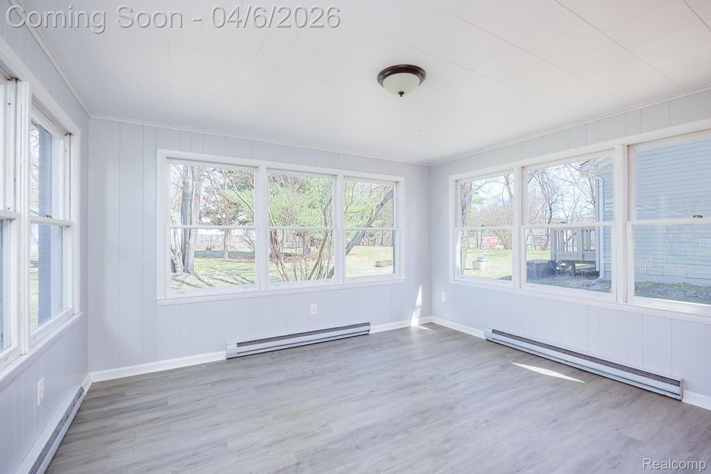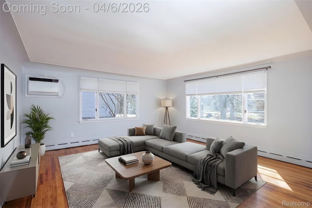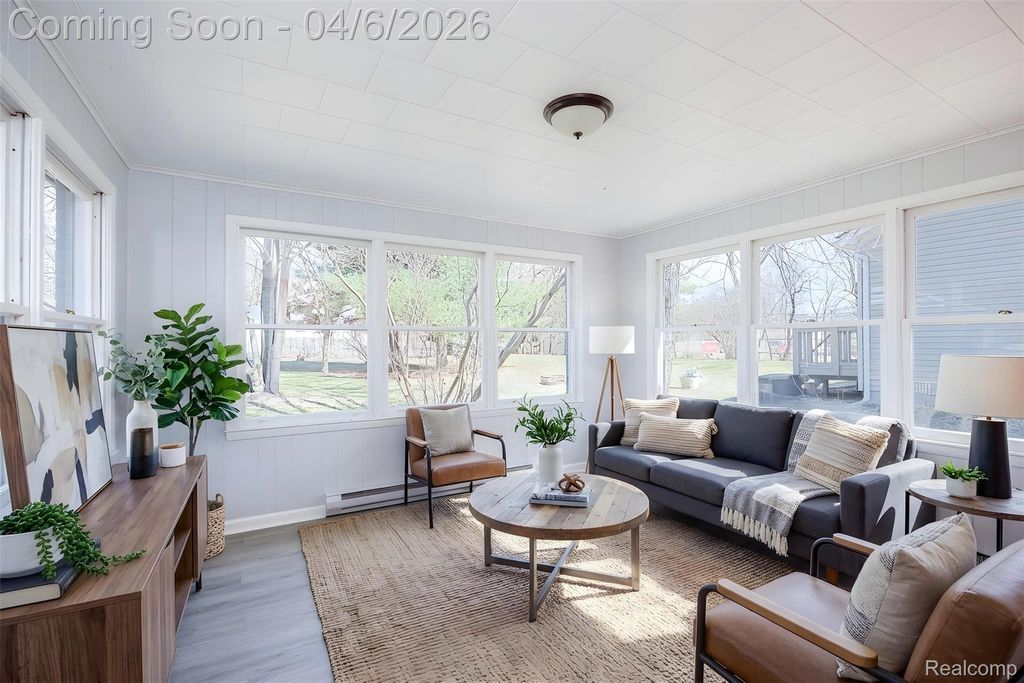 This delightful brick ranch features original coved ceilings, hardwood floors, and distinctive hardware. The open floor plan connects the dining area to the kitchen, which offers abundant cabinetry along with a newer refrigerator and microwave (both from 2021). The home includes three bedrooms and a beautifully renovated bathroom. There are two spacious living areas, a living room and a family room - that showcases a wall of windows overlooking the expansive backyard, which is lined with mature trees. Outdoors, you'll find an attached one-car garage and large 12 x 20 shed set on a concrete foundation. The property is conveniently located within walking distance of Whispering Woods and Grant Parks, as well as close to shops, expressways, grocery stores, and restaurants. Additional upgrades include an LG dual inverter smart air conditioner installed in 2024, a portable AC unit from 2022, and septic inspection / certified through Macomb County Environmental Health Department (December 2025).