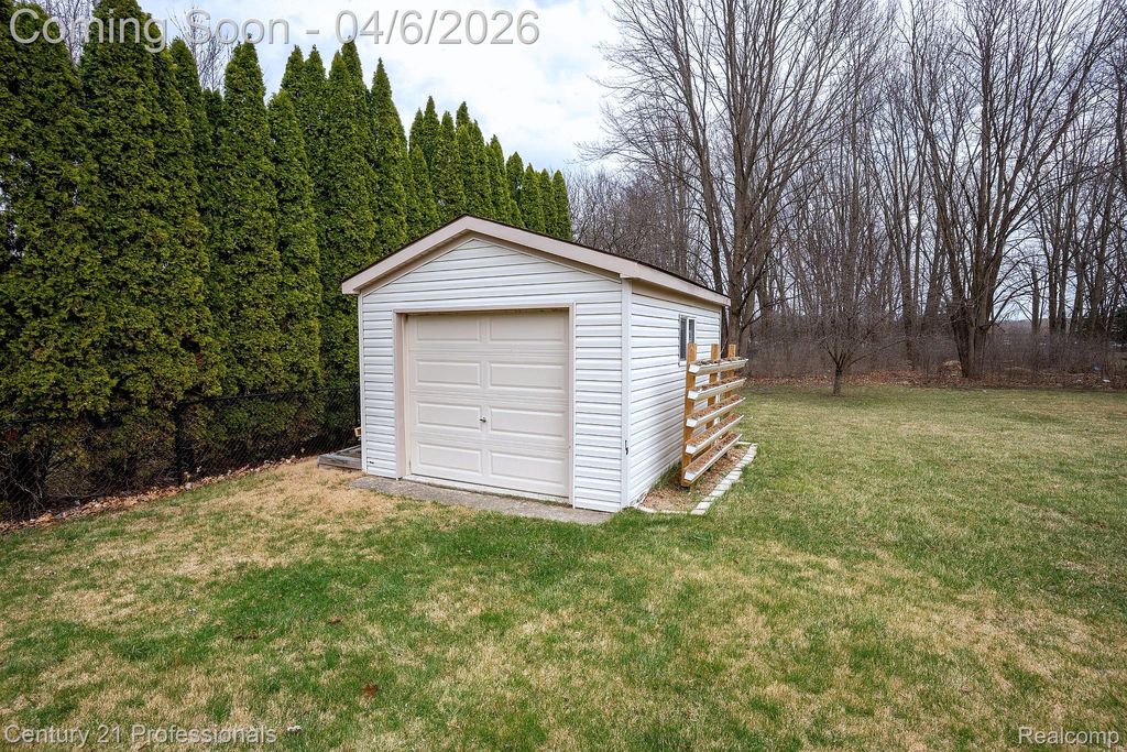 A rare opportunity to enjoy a country-sized lot in the heart of Sterling Heights! Situated on a picturesque 1-acre setting, this beautifully updated ranch offers the perfect blend of privacy and convenience. Inside, you will find 3 spacious bedrooms, 2.5 baths, and an open-concept layout featuring hardwood floors and a warm, inviting great room with a classic brick fireplace. The updated kitchen showcases maple cabinetry, solid-surface countertops, black appliances, and a charming breakfast nook"”perfect for everyday living. The primary bedroom includes a generous walk-in closet and is conveniently located near the updated main bath. A first-floor laundry and second full bath add to the home's functional layout. The finished basement is ideal for entertaining, complete with a half bath and ample storage space. Step outside to your own park-like backyard featuring stamped concrete patios and walkways, plus a versatile shed with a garage door"”ideal for storage or hobbies. Additional highlights include a 2-car attached garage, extra-long driveway"”perfect for guests, multiple vehicles, or added convenience, award-winning Warren Consolidated Schools, and close proximity to shopping, dining, parks, and everyday conveniences. Move-in ready with numerous updates, including: 3 dimensional roof (2007), kitchen & baths remodeled (2013), insulated garage door (2013), waterproofed basement with drain tile & additional sump pump (2015), stamped concrete patio & walkways (2015), windows (2017), front entry door (2023), newer appliances and more. This home truly offers the best of both worlds"”space, charm, and location!