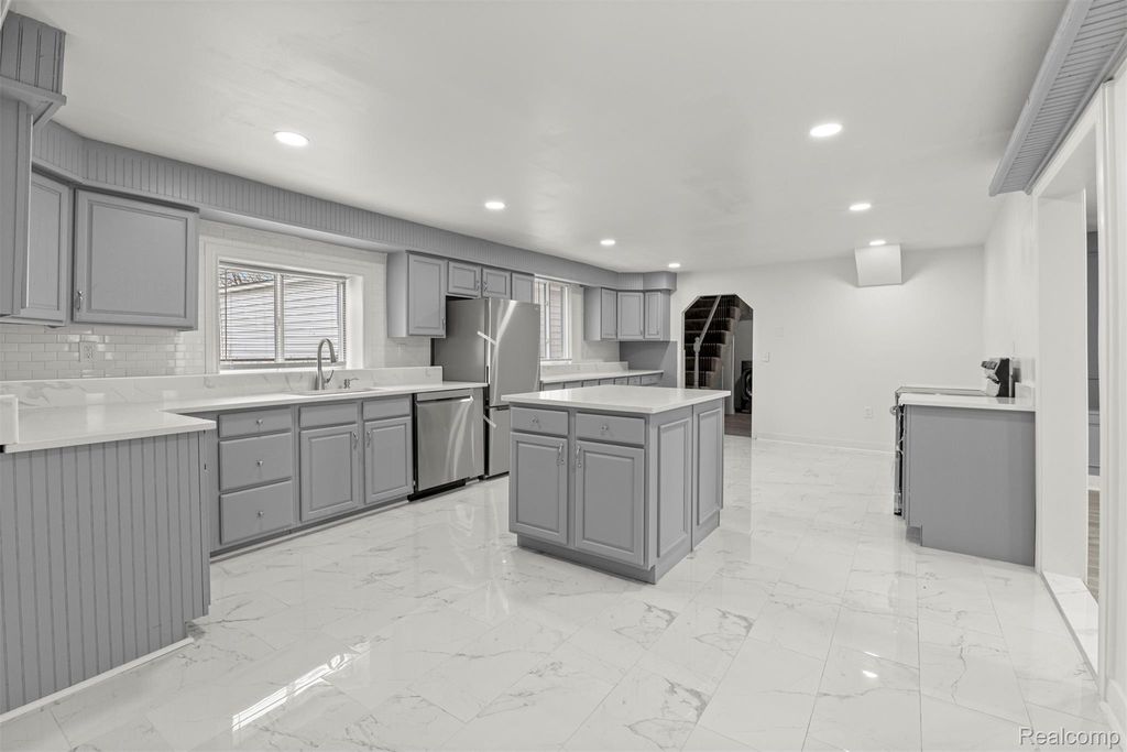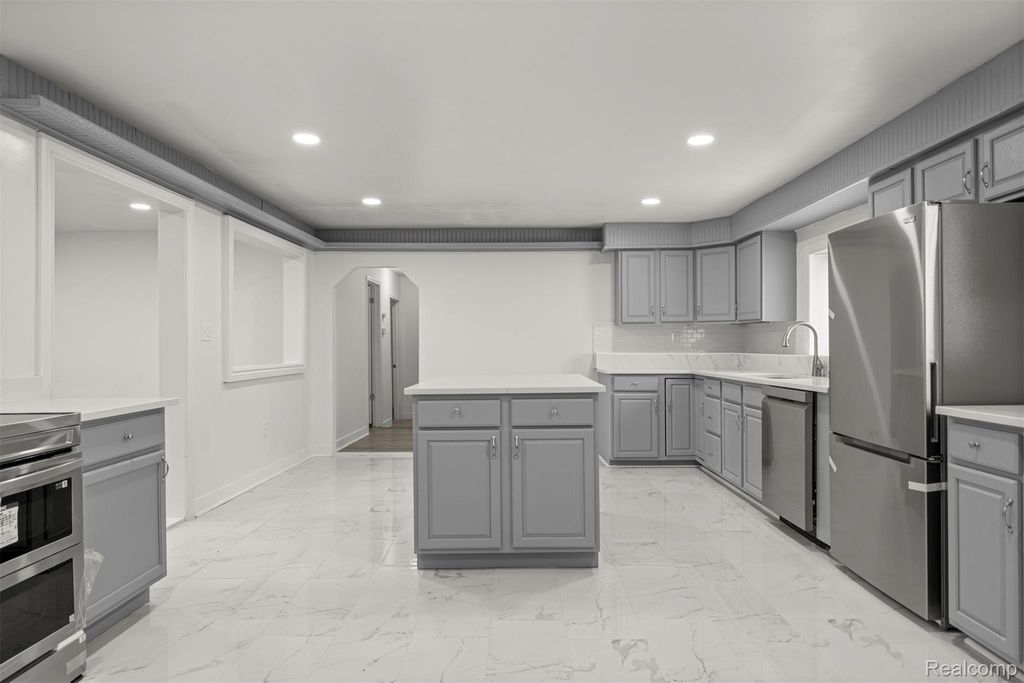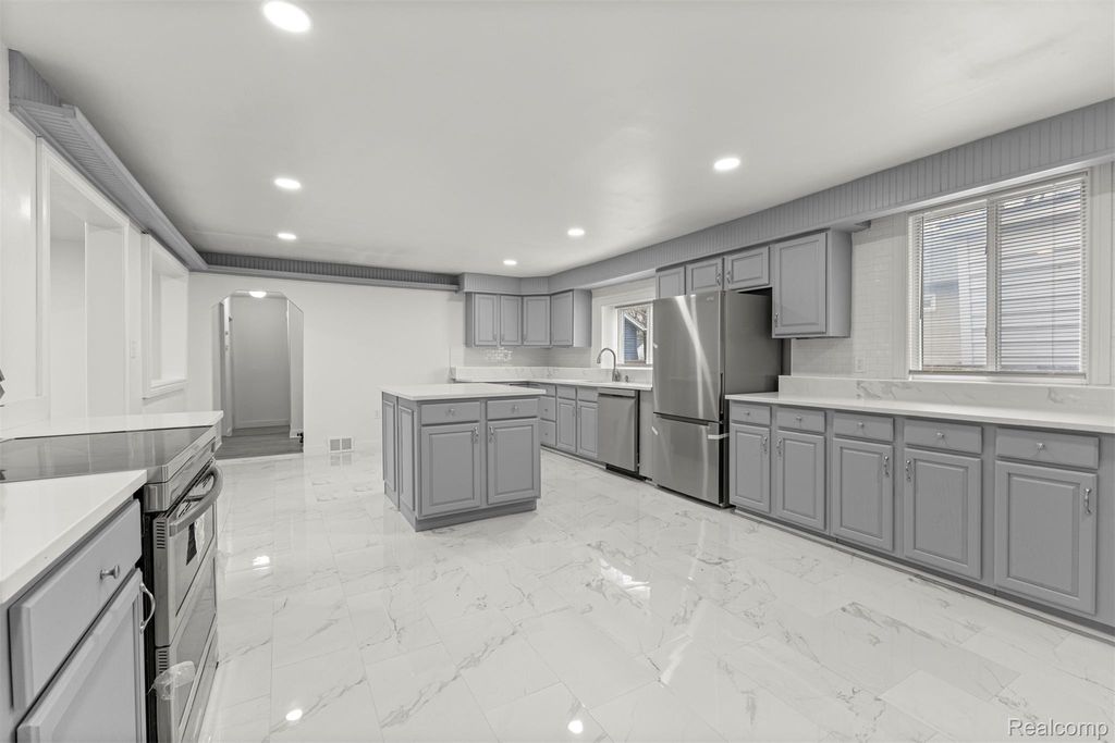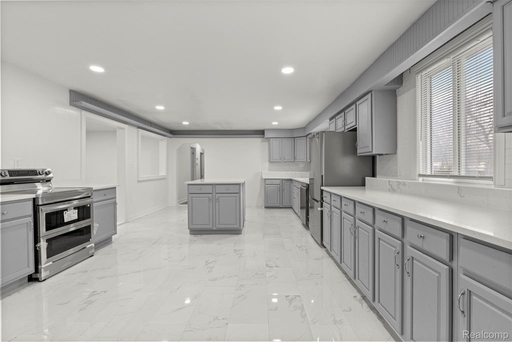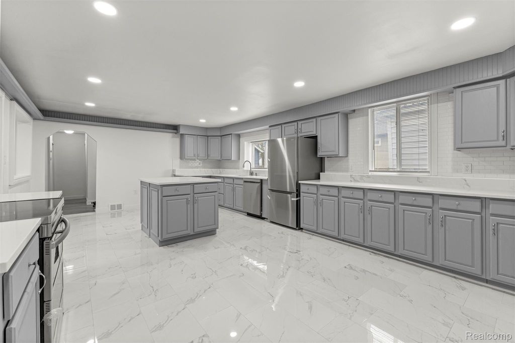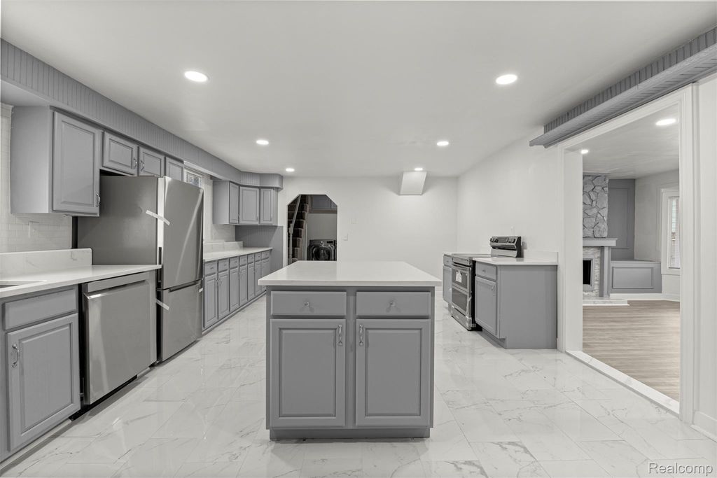 Welcome to this beautifully updated home, fully renovated from top to bottom. It features a spacious primary bedroom and three decent size bedrooms, a modernized bathroom, and a newly redesigned, generously sized kitchen with granite countertops. Enjoy the convenience of an attached garage and recessed lighting throughout. Ideally located near downtown Romulus, the property also boasts a large front yard.