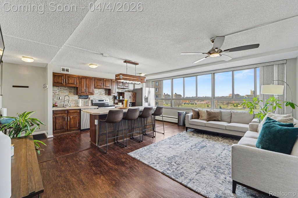 Welcome to this beautiful 2-bedroom, 1 bath, cooperative apartment offering a premier experience to enjoy Downtown Detroit living with stunning views and urban sophistication. Situated in a full-service building directly off the Detroit River, this residence offers an unparalleled lifestyle with breathtaking panoramic views of the Canadian skyline, the vibrant marina, the lush greenery of Erma Henderson Park, and the iconic downtown cityscape. Step inside and be greeted by an inviting and well-maintained living space flowing effortlessly to the kitchen featuring a large island with seating, a lovely tile backsplash and stainless steel appliances. Two comfortable bedrooms offer ample space for rest and rejuvenation providing flexibility for residents and guests alike. Enjoy the ease and convenience of all utilities being included in your monthly fees, simplifying your budget and enhancing your comfort. Full-Service building giving you the peace of mind and convenience of a full-service cooperative, which include amenities such as 24-hour security, on-site management, maintenance services, a pool available to residents and their guests, fitness room, beauty shop, community/clubhouse and more. Benefit from convenient access to major thoroughfares and public transportation options, making commuting and exploring the city a breeze. This unit is being offered partially furnished. Don't miss your chance to own a piece of Detroit's vibrant waterfront community. A non-refundable application fee applies; interview before admissions board required before approval.