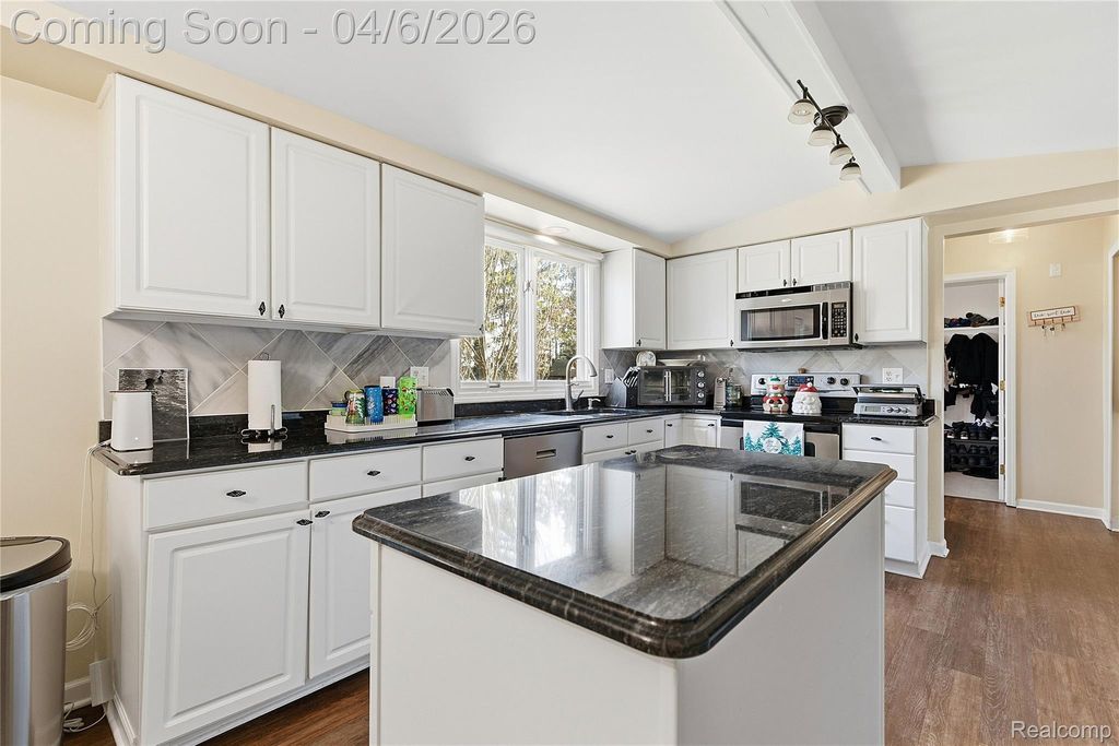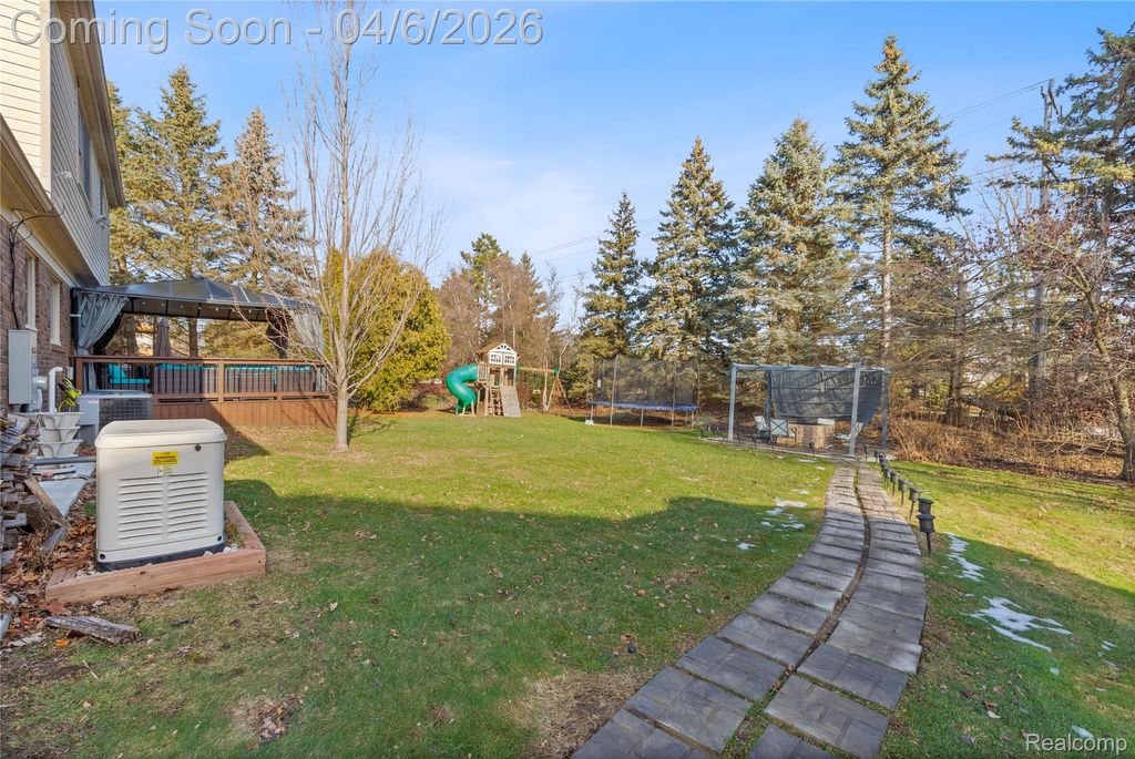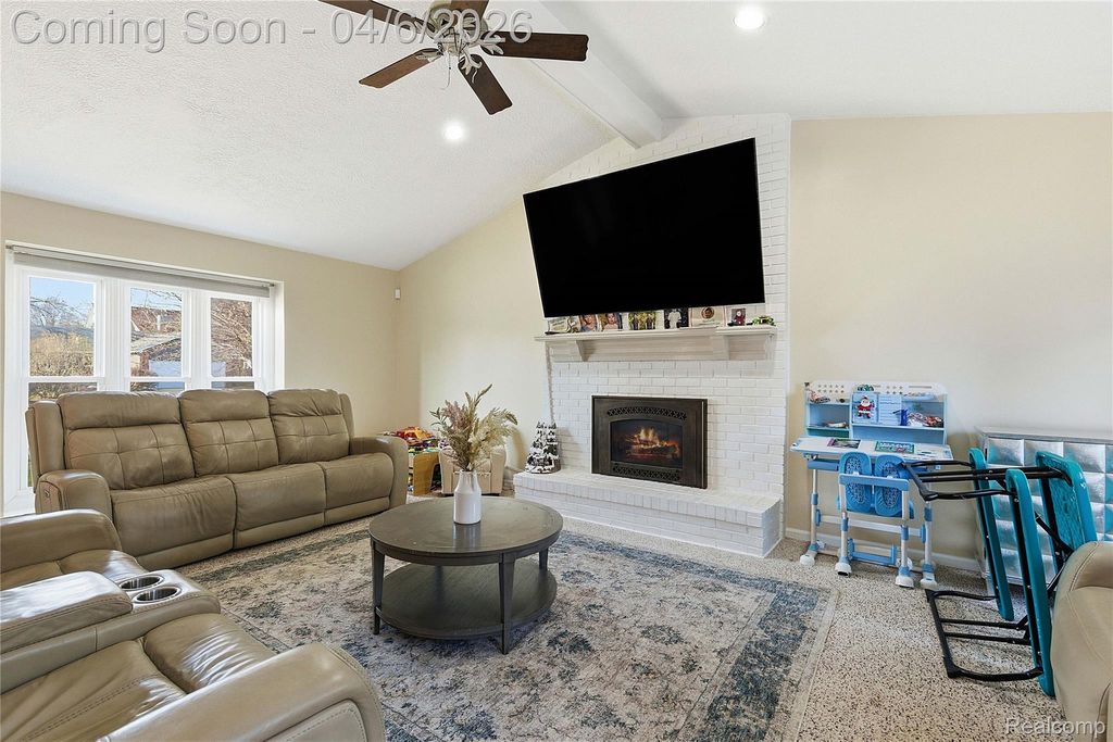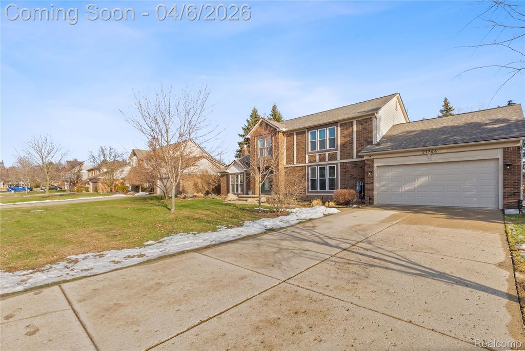 This beautifully updated and well-kept home sits just steps from the neighborhood park. It offers great curb appeal with lush landscaping, a sprinkler system, and a brick paver walkway. Major updates include dimensional roof shingles (2020), front windows (2020), a kitchen sliding door (2018), a high-efficiency furnace (2015), and luxury vinyl flooring on the main level (2018). The garage also provides an additional 8.5' x 7.5' storage area. Inside, you'll find a bright, open floor plan with a cathedral ceiling and a dramatic brick fireplace. The spacious kitchen features granite countertops, an island, stainless steel appliances, a tile backsplash, and a generous dining area. There's also a bonus buffet cabinet with granite near the remodeled mud/laundry room, plus a versatile great room that can easily include a formal dining space. Upstairs, the bedrooms are large, including a primary suite with double doors and an updated private bath. The second floor also highlights engineered wood flooring. The lower level is perfect for entertaining with a wet bar and granite counters, and the private backyard offers a huge two-tier deck"”ideal for relaxing or hosting gatherings.