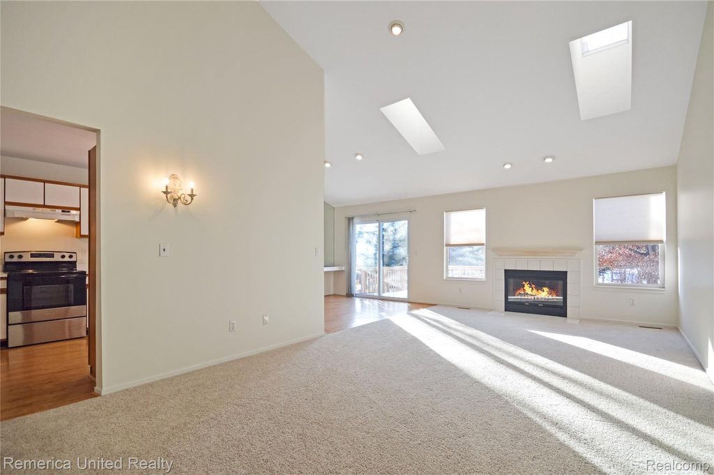 OPEN HOUSE: Saturday, 4/4, from 12-2 pm ~ Enjoy the convenience of maintenance-free exterior living in this one-story, end-unit condo at a great price! Located in beautiful Oakbrook Village. You'll appreciate the spacious interior with open floor plan. Great room has cathedral ceiling with 2 skylights and gas fireplace. Kitchen offers plenty of cabinets and counterspace with appliances included. Dining area with doorwall leading to deck with steps. 1st floor laundry room has utility sink, upper cabinets and includes washer & dryer. Primary bedroom suite features two 8 ft. wall closets and private bath with ceramic-tiled floor and shower. 2nd bedroom features 8 ft closet. Hall bath with ceramic-tiled floor and tub surround. New carpeting throughout. Professionally painted. Recessed lights throughout. Coat closets at front and garage entries. Water spigot in garage and next to deck. Unfinished basement. Occupancy at closing. Close distance to shopping, restaurants, expressways. Association fee $350/mo. includes exterior maintenance of grounds and building.