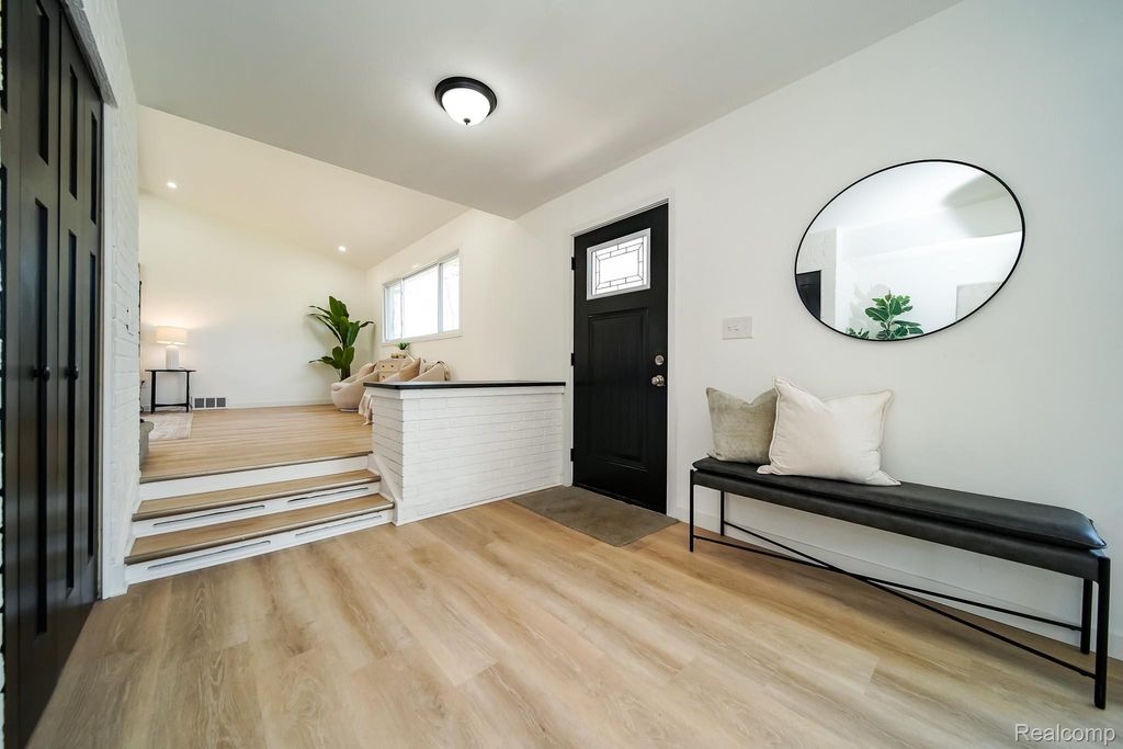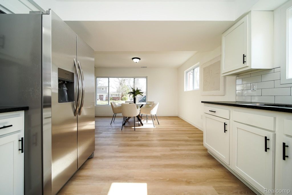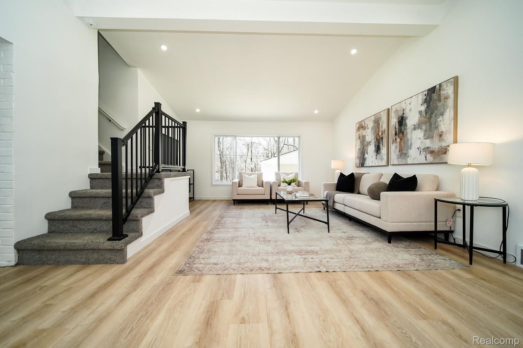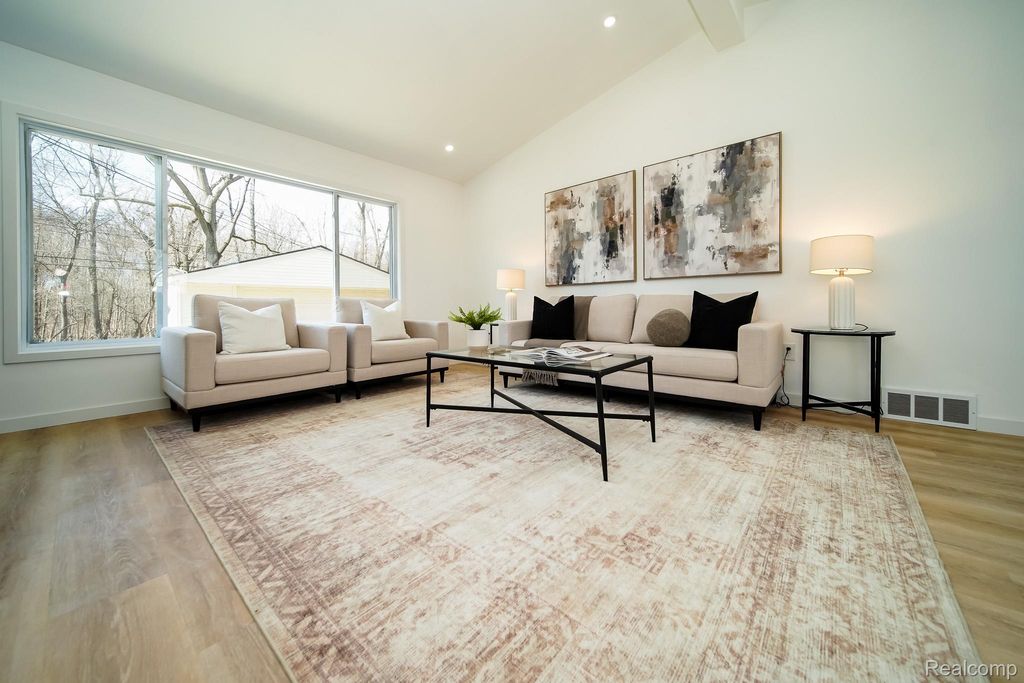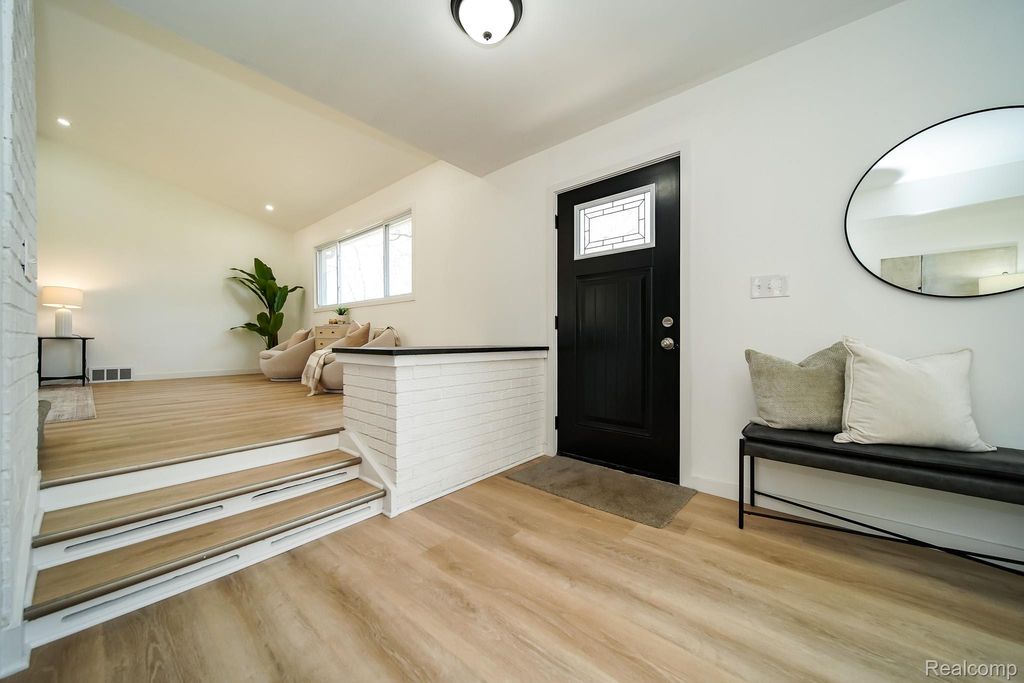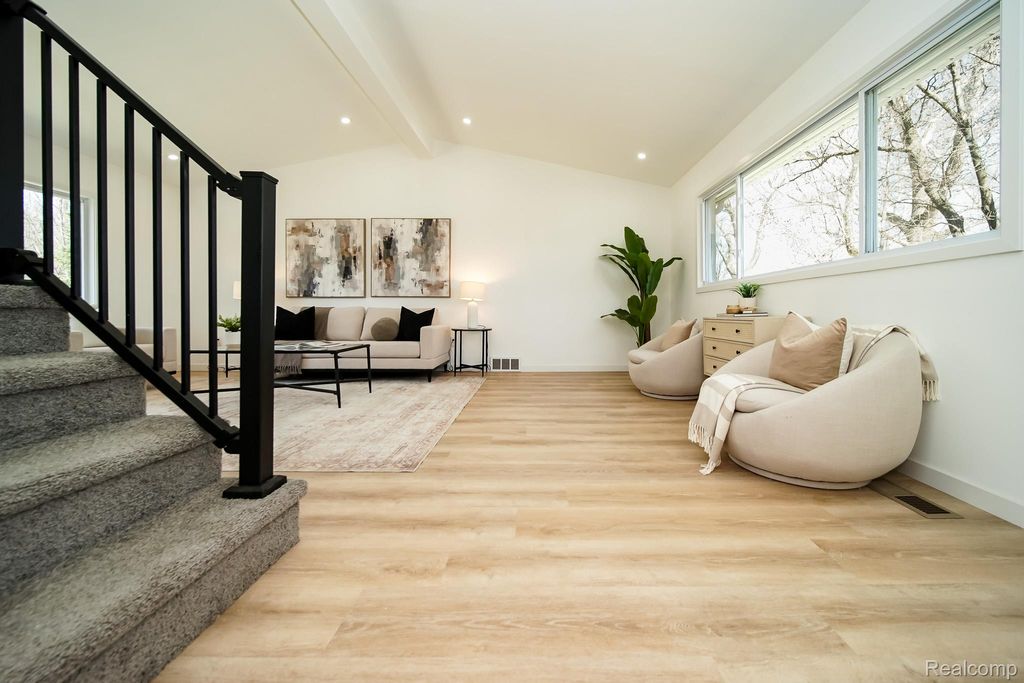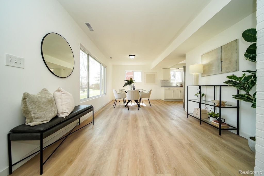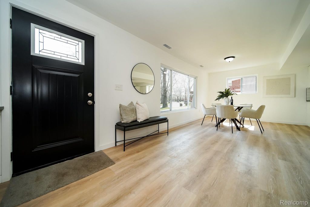 Very nicely completely updated colonial on a deeper (135') lot backing to a wooded ravine lot with creek...deep in the sub. Kitchen features newer whte Shaker style cabinets, granite counters, undermount stainless steel sink, subway tile backsplash and a full set of included stainless steel appliances. Combo dining area/living room off kitchen. Three steps up to a large family room with vaulted beamed ceiling. First floor laundry. Half bath with newer vanity, top and fixtures. Upper main bath with newer double vanity, quartz top, dual undermount sinks, custom subway tile tub surround, seated tub, new floor and newer fixtures. Bedrooms have vaulted ceilings and new carpet. Primary bedroom with double closets. New paint and fixtures throughout. Clean open basement with newer (2025) furnace, hwh and central air. Late model garage (1997) with newer siding, roof and rollup door. New roof and windows. Taxes are currently non-homestead but will be rated at a lower millage for an owner occupant buyer. Seller will supply a Certificate of Occupancy for closing. Owner is a licensed broker in the state of Michigan.