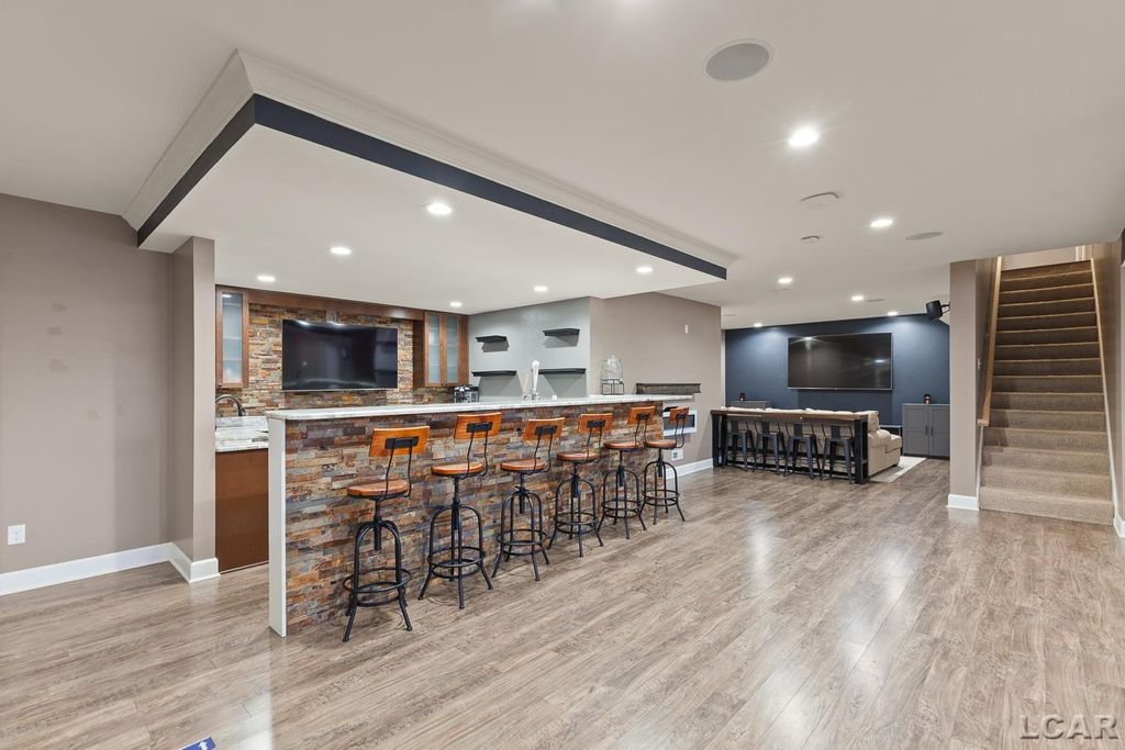 Exceptional at The Sanctuary at Brills Lake! Sought-after gated community with access to Private Brills Lake! Luxury living and entertaining at its best with upscale features, finishes, and layout! Serenity set on 1-acre with over 3,500 SF, plus a fabulous finished basement, 3.5-car attached garage, and back yard with covered tiered deck! Grand 2-story entryway, vaulted soaring ceiling in living room with stone gas fireplace, Cherry kitchen with granite counters, island, walk-in pantry and spacious breakfast nook with doorwall to deck. Home office/formal living and formal dining with front view! Main floor primary ensuite with tiled shower, soaking tub, dual sinks, walk-in closet with organizer, and deep wall closet. Upstairs with 3 additional spacious bedrooms, walk-in closets, and main bath with tub. The WOW finished basement features high ceilings and is complete with wet bar with refrigerator, beverage taps, and dishwasher all to stay. Basement also features a recreation area, TV area, surround sound, ½ bath, electric fireplace, and ample storage. Oasis backyard with the impressive covered deck with hot tub, and wooded backyard with firepit! Spectacular neighborhood with stunning homes and easy access to I-94 to surrounding Ann Arbor and Jackson. Natural gas, sewer, whole house generator! Furniture and furnishings negotiable, dock slip availability and quick occupancy!
