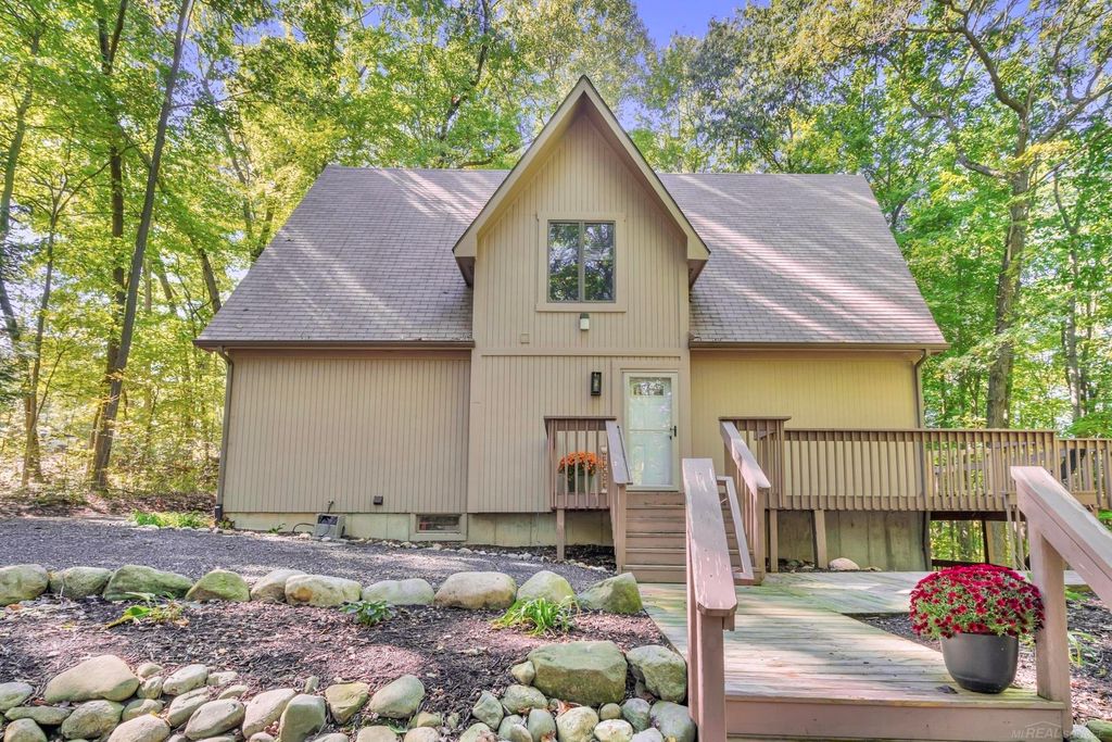 ! OPEN HOUSE CANCELED! Welcome to this one-of-a-kind split-level home, perfectly nestled on a private 2.5-acre wooded lot, offering both tranquility and luxury. From the moment you arrive, you'll be captivated by the expansive wrap-around wood deck and detached three-car garage, ideal for car enthusiasts or extra storage. Step inside to discover soaring vaulted ceilings and modern updates throughout, creating a welcoming and stylish atmosphere. The heart of this home is the beautifully updated kitchen, featuring high-end cabinetry, granite countertops, and ample space for cooking and entertaining. Retreat upstairs to the sprawling master suite, a true sanctuary with abundant closet space, a cozy sitting area, and a breathtaking full bath that invites relaxation. The fully finished walkout basement provides additional living space, perfect for a family room or entertaining. With its unique design and thoughtful finishes, this home offers the perfect blend of privacy, comfort, and modern amenities. Updates include, but not limited to a newer water heater (2022) and AC unit (2021). Don't miss your chance to experience this hidden gem!