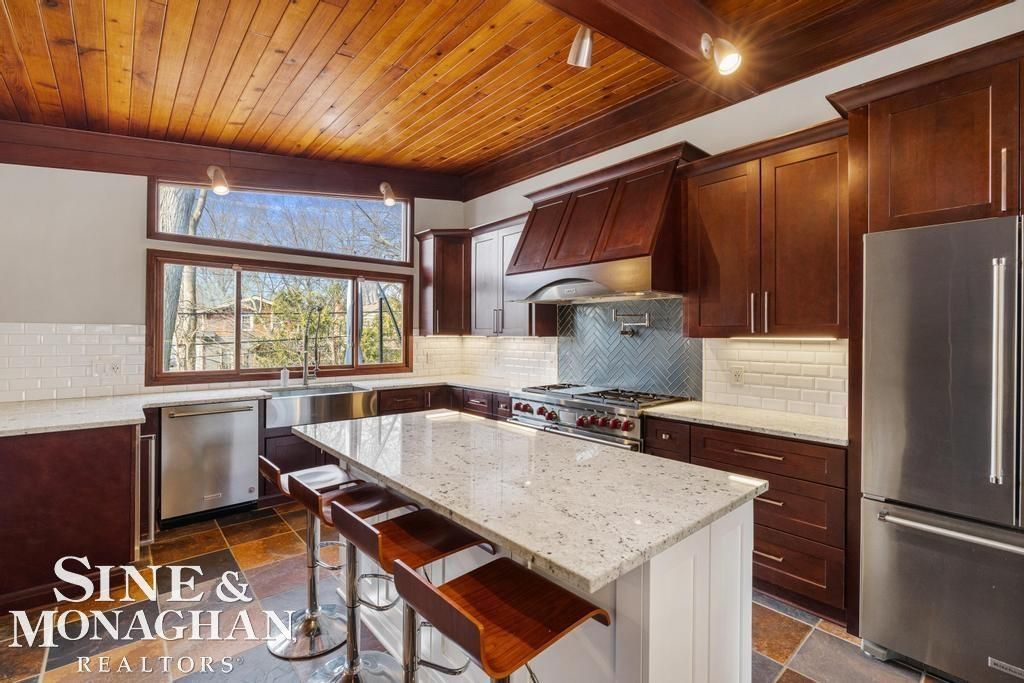 Incredible tri-level home in Royal Oak! Step inside and fall in love with this exquisite 3-bedroom, 3-full-bath residence that's truly move-in ready. No expense was spared in the expansive gourmet eat-in chef's kitchen, showcasing custom cabinetry, granite countertops, large island, an oversized Wolf range, and high-end KitchenAid stainless steel appliances, including a dual-zone wine fridge. Every angle of this home reflects meticulous craftsmanship, highlighted by imported Australian cypress flooring with matching ceilings for a dramatic, cohesive look. The main level offers two generous bedrooms and a beautifully remodeled full bath. Lots of natural light grace this home throughout. The upper level is dedicated to a stunning primary suite complete with a fireplace, walk-in closet, and a massive custom bath featuring a large stand-up shower, jetted tub, and private water closet. The multi-tiered deck with cabled stairs and railing flows seamlessly to the finished walkout basement, which includes a second natural fireplace, a brand-new full bath, and a spacious storage area with epoxy flooring. Custom Hunter Douglas window treatments. Home features solar panels for cost efficiency. The backyard is perfect for entertaining family and friends, offering a huge deck that leads to a completely fenced-in private, multi-level yard with a dedicated garden area. Look no further, this is luxurious loft living at its finest!