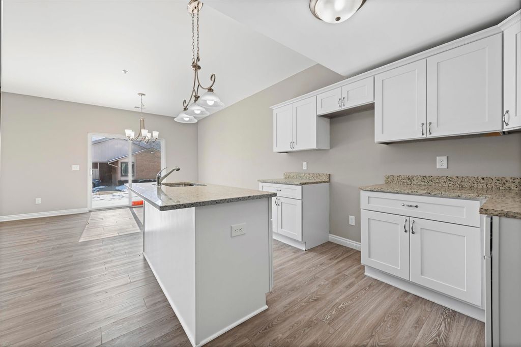 NEW CONSTRUCTION! Ranch style Condos Available. Two Bedroom, Two full bathroom, Two car garage, New Construction Condo. Large Kitchen with granite countertops, Massive Kitchen Island, Nook and open to the Living Room. Large Laundry Room, Plenty of storage. Enormous Master Bedroom with Walk In Closets and Double Vanity Sinks. Upgraded Granite and Hardwood Floors throughout. May upgrades to pick from as well. Current association dues include exterior maintenance, inside and outside water, trash, lawn and snow. Ready for occupancy. Photos are of Similar Unit.