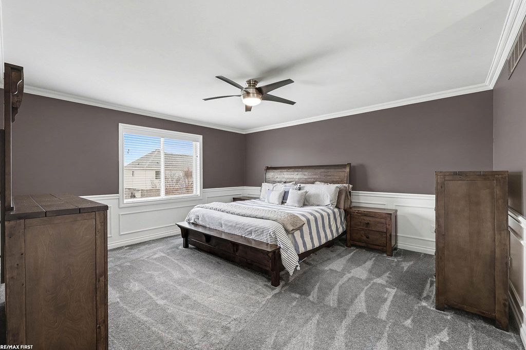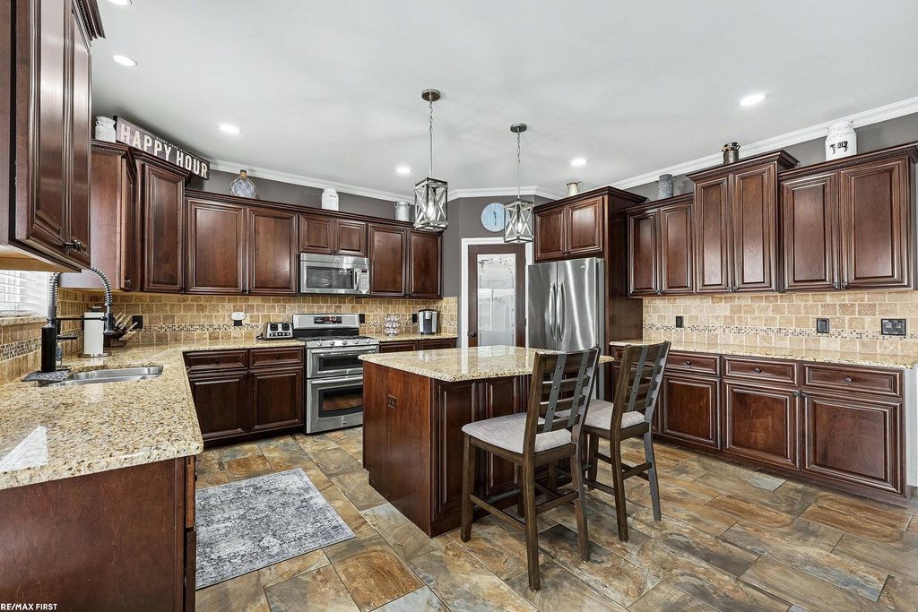 Welcome to this 4 Bedroom/2.5 Bath colonial with an incredible inground salt water pool. Pool will be open at the beginning of May. You will be amazed at how clean this home is. Stunning Kitchen with loads of cabinet space, large island, pantry, & granite. Stainless Steel Appliances. Great Layout with kitchen open to eating area & Family Room. Family room with gas fireplace. Eating area has custom made 8 person matching granite table. Notice the crown molding and wainscoting throughout. A beautiful office off the foyer with wood flooring. Upstairs offers 4 large Bedrooms & 2nd floor laundry. Primary Suite with large walk-in closet, full bathroom with double sinks, stand up shower & jetted tub. Basement is all insulated and framed in. Prepped for a bathroom. New 75 gallon hot water tank. Sump pump with water pressured backup. Egress window. Dream backyard featuring exposed aggregate patio, gazebo, and heated salt water pool that is only 4 years old. Professionally installed & maintained. New Carpet and paint in 2024 as well as exterior trim painted in 2024. Nothing to do but move in! Macomb/Utica Schools = lowest tax rates around!