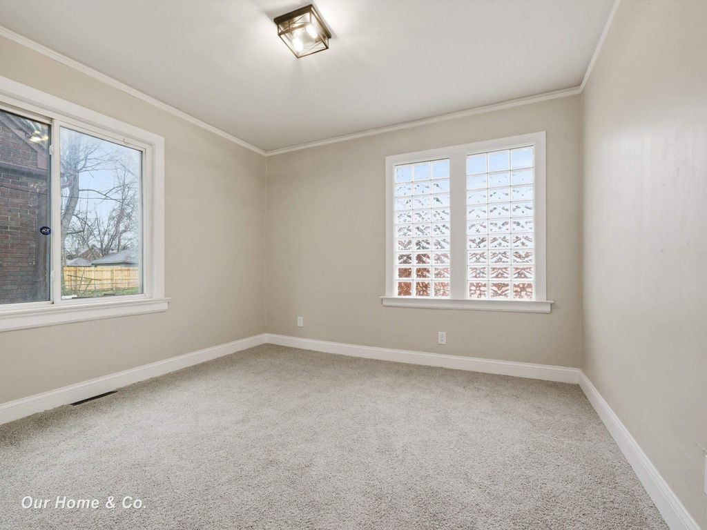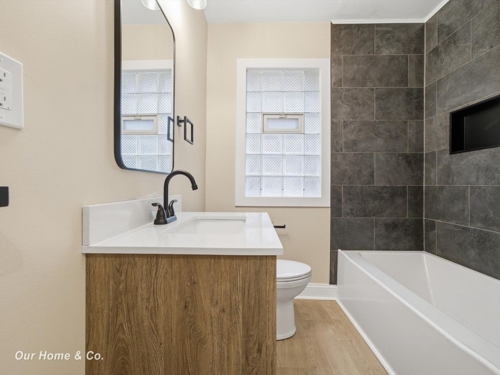 Welcome to this beautifully remodeled brick bungalow located on a great block in the desirable Yorkshire Woods area, just minutes from East English Village in Detroit. This home has been completely renovated from top to bottom, offering a perfect blend of modern updates and classic charm in a well-established neighborhood. Step inside to find custom vinyl plank flooring and fresh paint throughout, creating a clean, cohesive feel in every room. The brand-new kitchen is designed to impress, featuring new cabinetry, sleek quartz countertops, and a layout that's both functional and stylish. Upstairs, you'll find a huge primary space that offers incredible flexibility-perfect for a master suite, home office, or even a private second living area. The bathroom showcases a custom tile shower with detailed finishes that truly stand out. The fully finished basement provides additional living space, ideal for a family room, entertainment area, or home gym. Outside, enjoy a massive brand-new driveway with plenty of parking and a huge back deck that's perfect for cookouts, relaxing, or hosting guests. This home also features a brand-new furnace and water heater, giving you added peace of mind for years to come. With attention to every detail and a location near one of Detroit's most sought-after neighborhoods, this move-in ready home is one you won't want to miss.