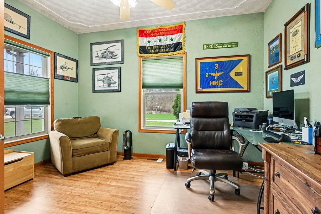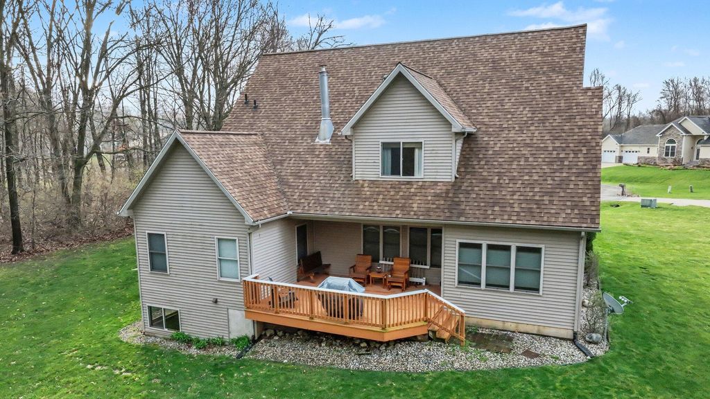 Beautifully maintained energy efficient home featuring a dedicated office space, main floor laundry, a cozy wood burning fireplace, a spacious eat in kitchen with island, all appliances including a double oven and access to the partially covered deck to enjoy the private acre lot. Enjoy peace of mind with numerous updates including a whole house natural gas generator, 2-zone furnace with humidifier and all new insulation throughout the home. Additional features include a sprinkler system, alarm system, central vacuum, surround sound, and window treatments. Large primary suite with huge walk in shower, ample storage space and walk in closet. Four spacious bedrooms upstairs, two baths and an expansive bonus room that provides endless possibilities. Daylight windows in the basement, plumbing for an additional bathroom and a home gym that could be included. Sitting quietly at the end of a culdesac, visit 6287 Markham Lane today!