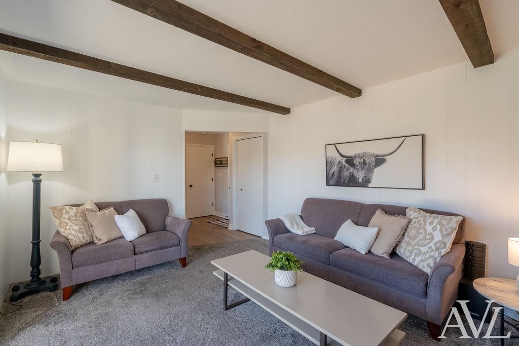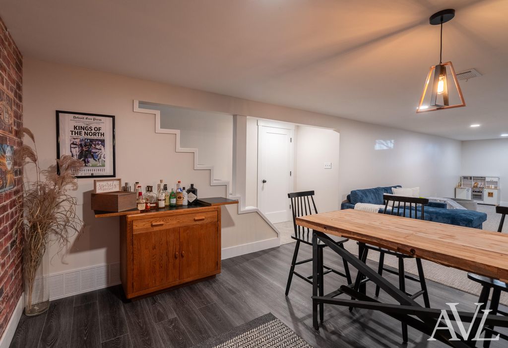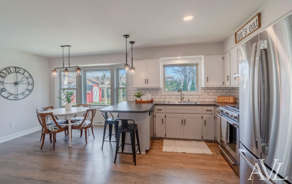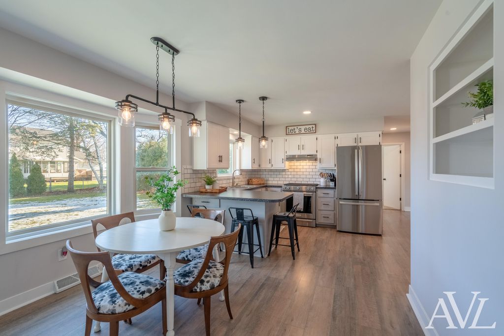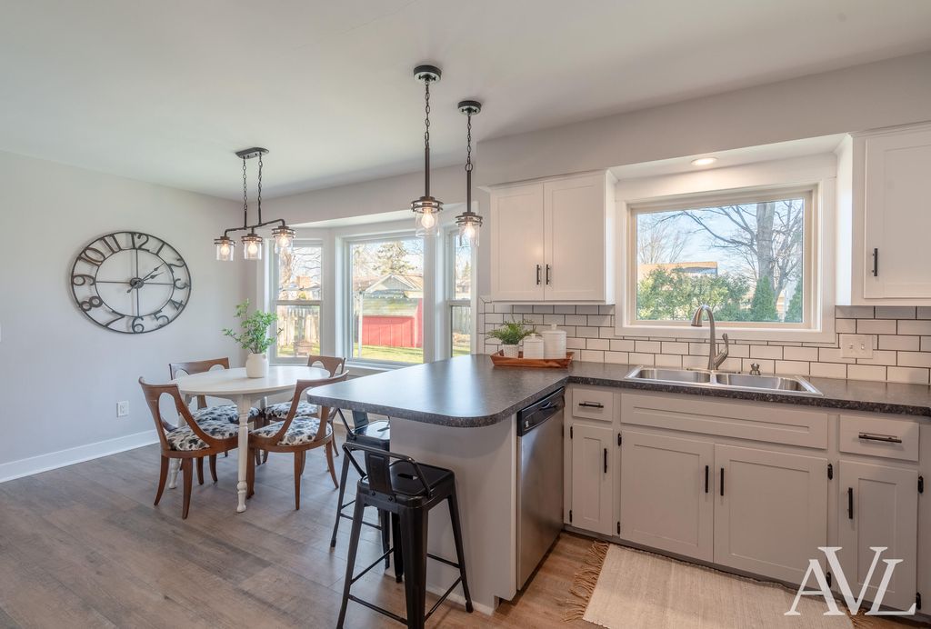 Beautifully updated 3-bedroom, 1.5-bath ranch-style home situated on a spacious lot. This move-in-ready home is sure to impress even the pickiest buyers, with nearly every surface thoughtfully updated. As soon as you step through the front door, you will feel at home. The remodeled kitchen features an added peninsula with seating, subway tile backsplash, Formica countertops, stainless steel appliances, and vinyl plank flooring. The dining area showcases bay windows that flood the space with natural light and offer views of the backyard. The main level includes two cozy living areas, one with a wood-burning fireplace. The fully renovated main-floor bathroom offers a dual-sink vanity, stylish tile, and a tub insert with tile surround. Three main-floor bedrooms include a generously sized primary bedroom. Additional main-level features include a laundry room and half bath. The recently finished lower level is the perfect spot for entertaining or watching the big game and offers amplestorage space. Outside, enjoy a fully fenced backyard, an ideal summer retreat. Notable updates/features include a new roof, new windows, new flooring, and fresh paint throughout. This home is loaded with charming extras like white washed brick on the exterior, a sliding barn door on the ?? bathroom, built in shelves in the kitchen, exposed beams in the back living room, shiplap and trim details in the bedrooms. Make sure to schedule your showing before it's gone! Seller requests all offers be submitted by Monday, January 19 at noon.