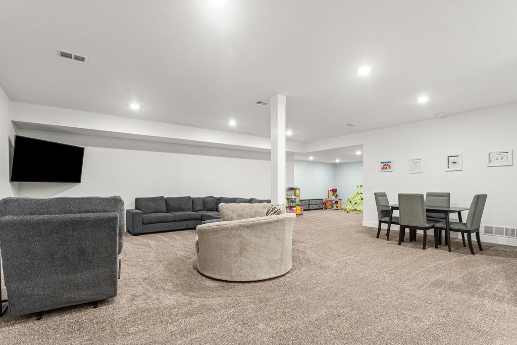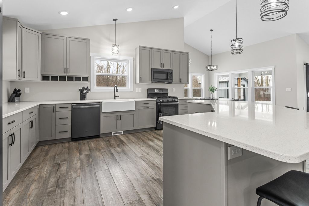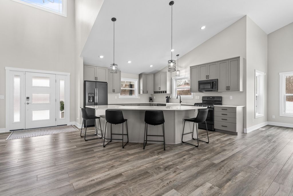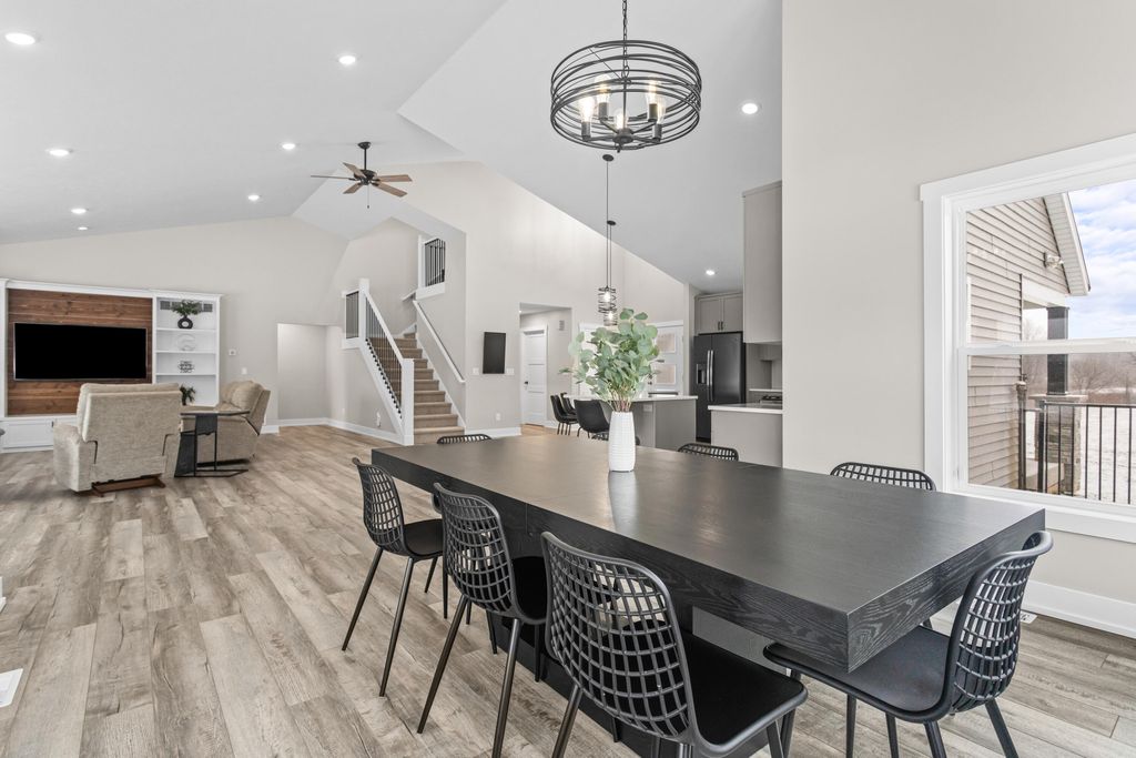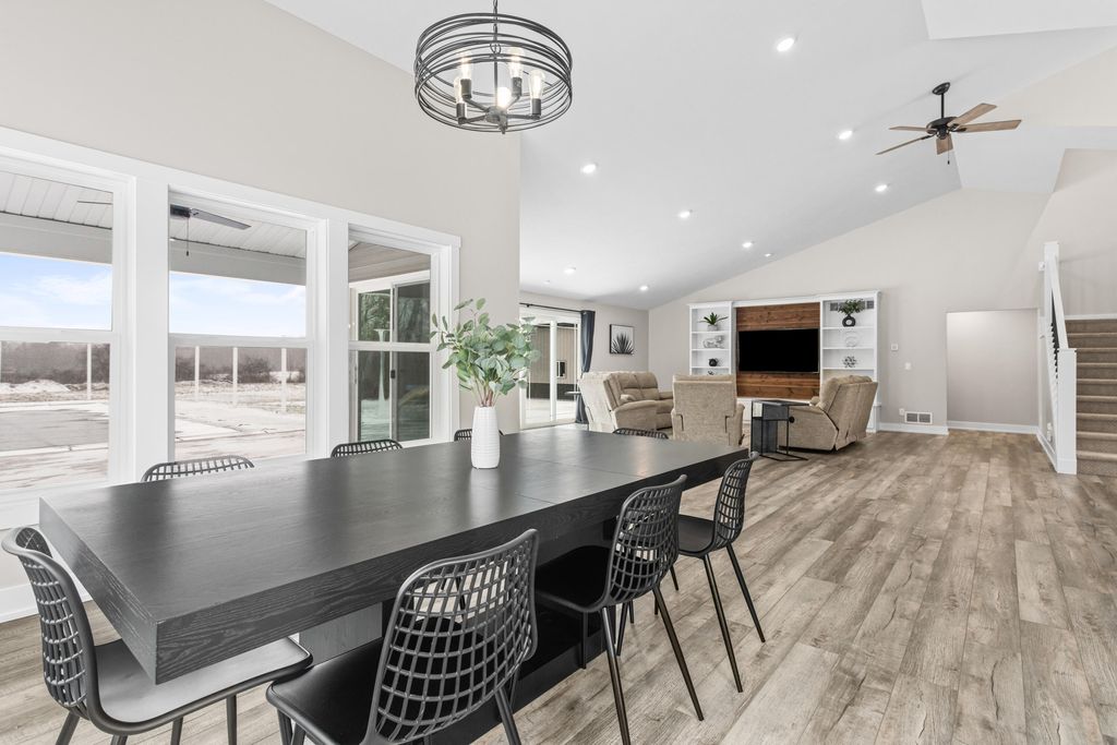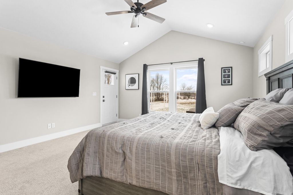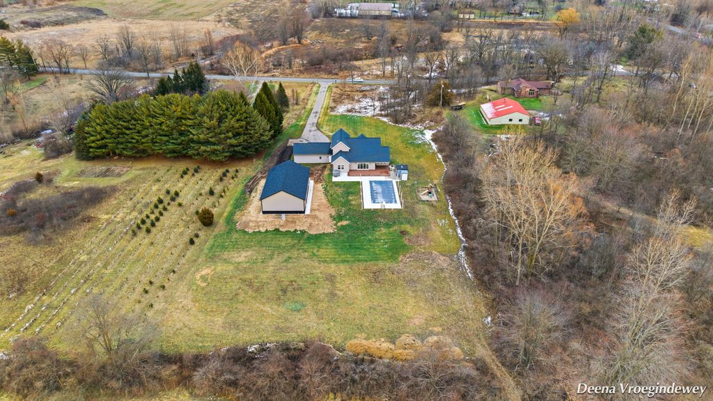 Newer 6-year-old home showcasing modern design and thoughtful functionality throughout. The main floor features a desirable primary suite with direct access to the deck, perfect for relaxing mornings or evenings outdoors. Enjoy a huge, expansive open-concept kitchen complete with quartz countertops, a spacious dining area, and a bright living room ideal for entertaining. Also on the main level is a newly added mudroom and a flexible office or second bedroom to suit your needs.Upstairs offers two additional bedrooms and a full bathroom. The finished basement provides a large recreation area, two more bedrooms, one bathroom, and plenty of storage space.If the interior doesn't sell you, the exterior certainly will. A brand-new 35x60 pole barn features epoxy floors, a finished ceiling, rough-in plumbing for a future bathroom, and both gas and electric service. The outdoor amenities continue with a 20x40 heated saltwater pool complete with an 8-foot sun ledge and automatic cover,plus a storage shed and a truly unique outdoor bathroom and shower. To top it all off, the oversized heated three-stall garage makes this property stand out even more. Call today for your private showing.