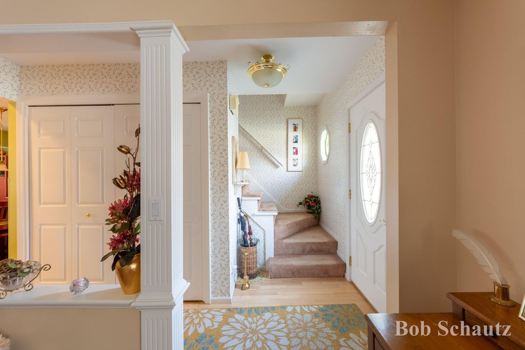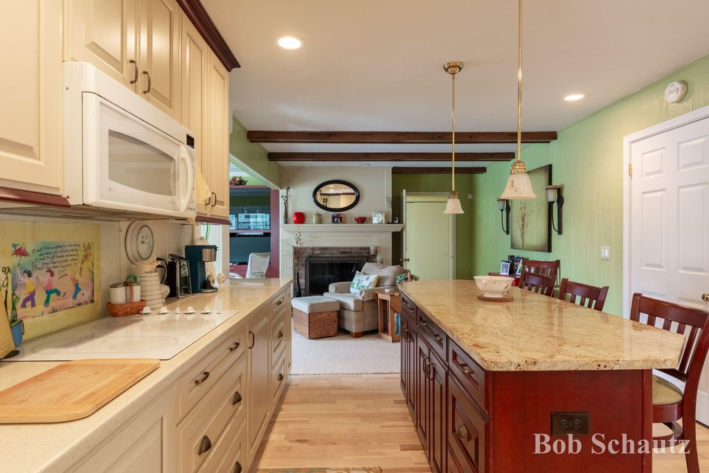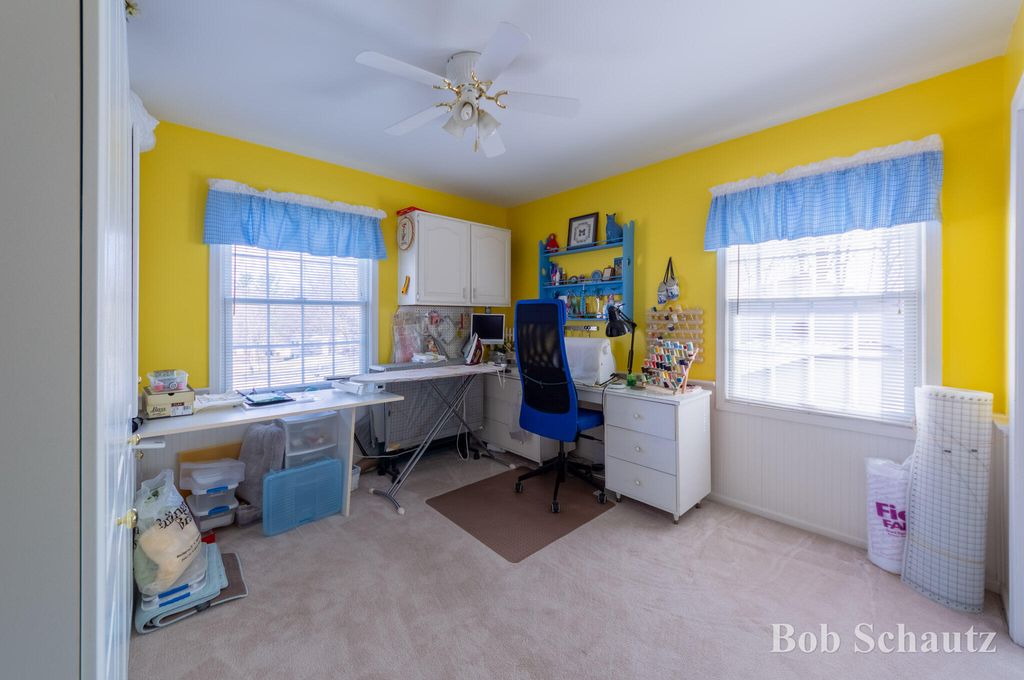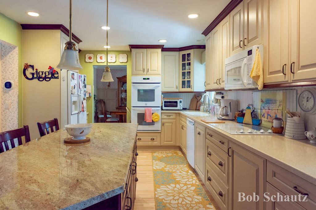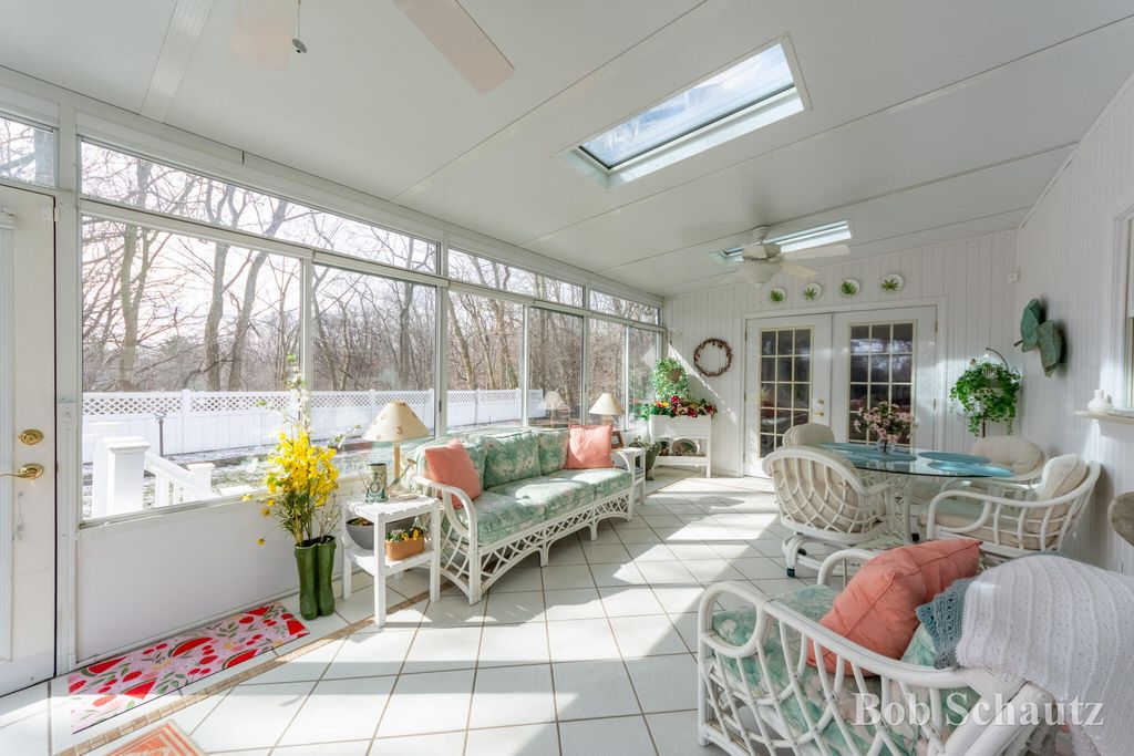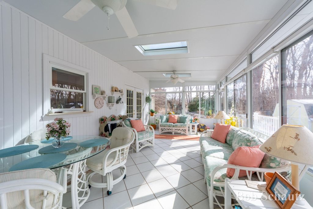 First time on the market! This 3 bedroom 1 1/2 bath home was built in 1978 and remains well-maintained with many updates including a roof in 2024 and a newer kitchen with custom full extension pull outs in the cabinets and pantry. Huge sun porch overlooking a professionally landscaped yard with underground sprinkling. Guest room with murphy bed, primary suite and additional bedroom upstairs. Fireplace in the family room, main floor utility and workshop in the basement with built-ins and many electrical outlets. Convenient to schools, restaurants, and M6. This is your new forever home!