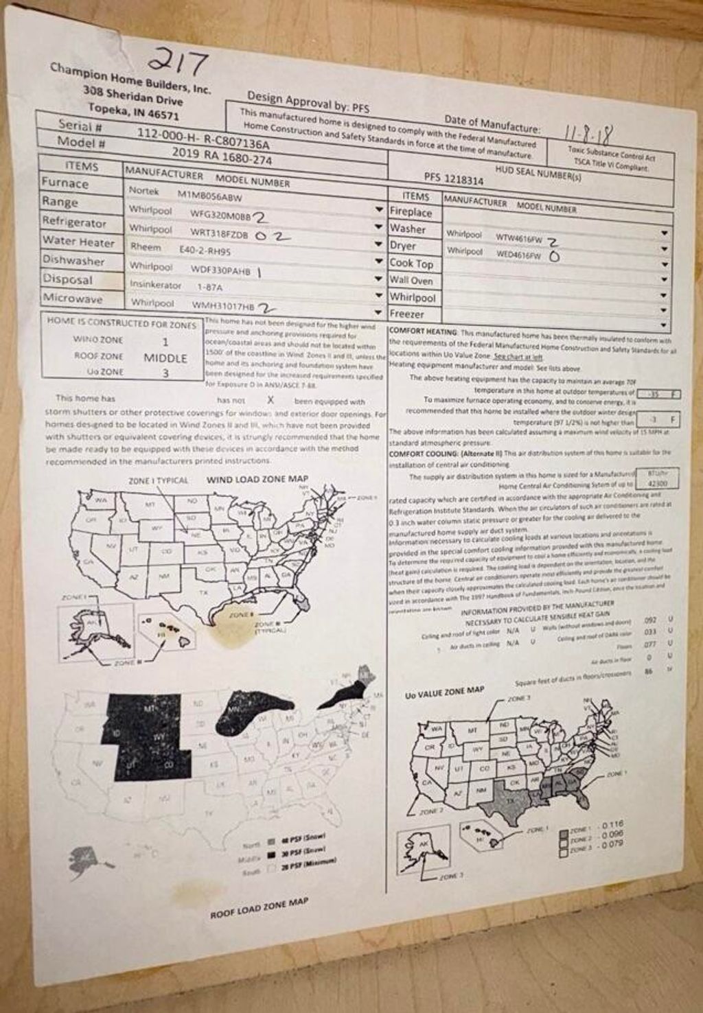 | APPLIANCES | Dishwasher, Dryer, Microwave, Range, Refrigerator, Washer |