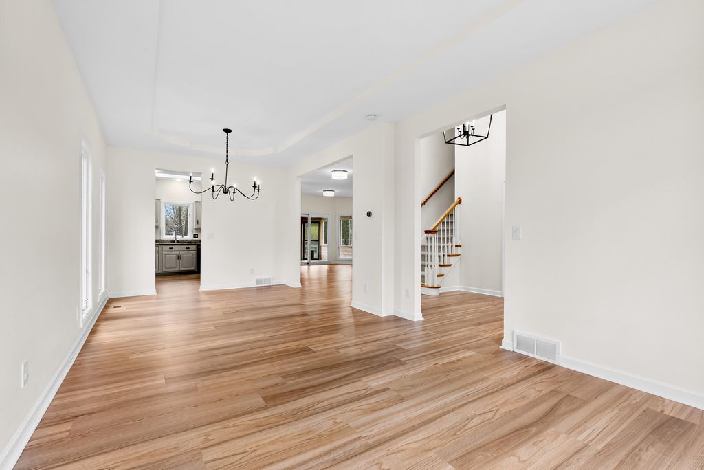 Open House Sunday, 12th April 12-2,This exceptional Rudgate residence features 4 generous bedrooms, three and a half baths, and a three-stall garage, set in an unbeatable location. Vaulted ceilings and premium finishes throughout the home create an atmosphere of sophisticated, high-end living. The main level includes formal living and dining rooms, plus a freshly updated modern kitchen that opens to a bright family room with a fireplace. A three-season room and large deck extend the living space outdoors, overlooking a private, fenced backyard with fire pit. The main floor also includes a half bath, laundry room, and mudroom. Upstairs, the luxurious primary suite is a true retreat, featuring an en-suite with separate soaking tub, shower and an oversized closet. The finished lower level, offering a number of versatile spaces, features a full bath, large recreation room, fantastic wet bar, bonus room and door to back yard. Updates include, flooring, carpet, washer & dryer