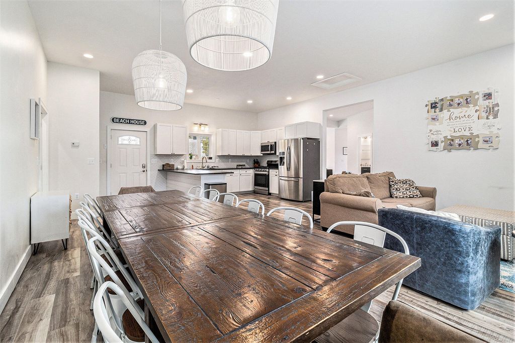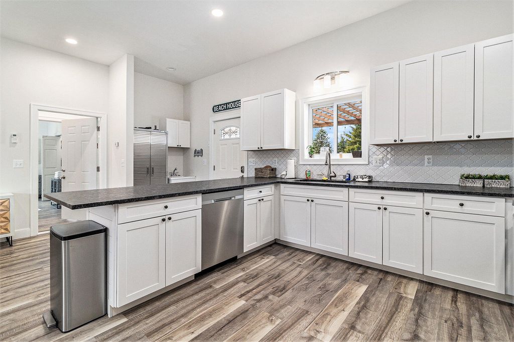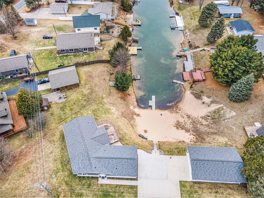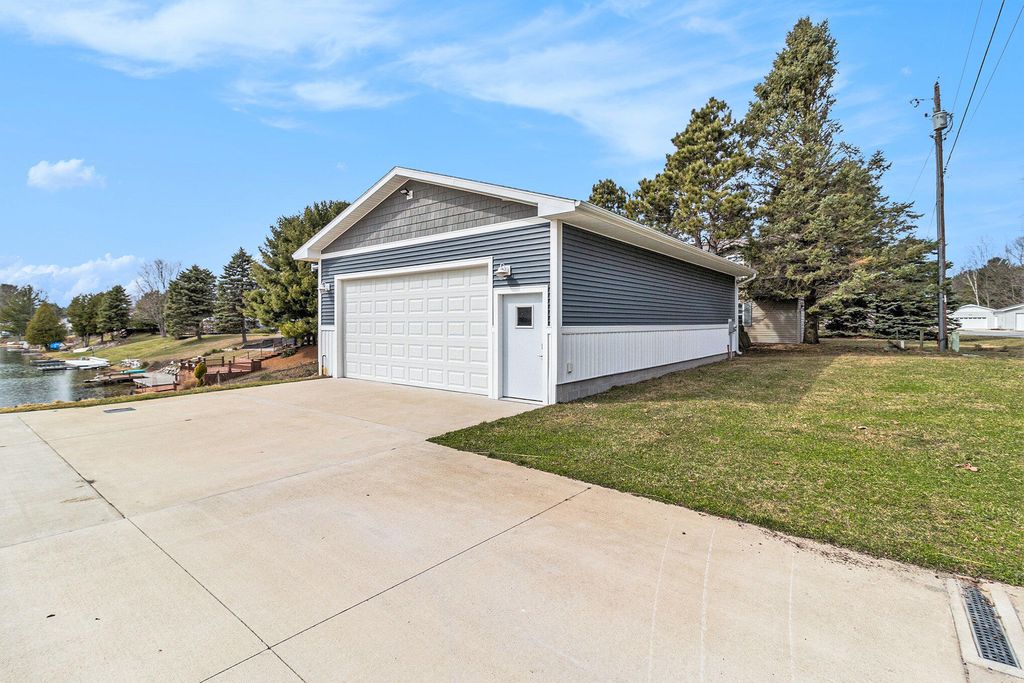 Have you been looking for the perfect lakefront retreat? This 5 bedroom 3 bath home has a floor plan sure to impress. With 3 bedrooms and 2 baths on one half of the house and 2 bedrooms one bath on the other you get the privacy you want and a large open common space for gatherings with beautiful views of your own private beach frontage. Enjoy the patio space under the pergola with plumbed propane for your grill and fire pit. The 4 stall climate controlled garage is ideal for all your Silver lake sand dunes toys and an extra large concrete driveway leaves you plenty of space for parking. Call today to request your private showing.