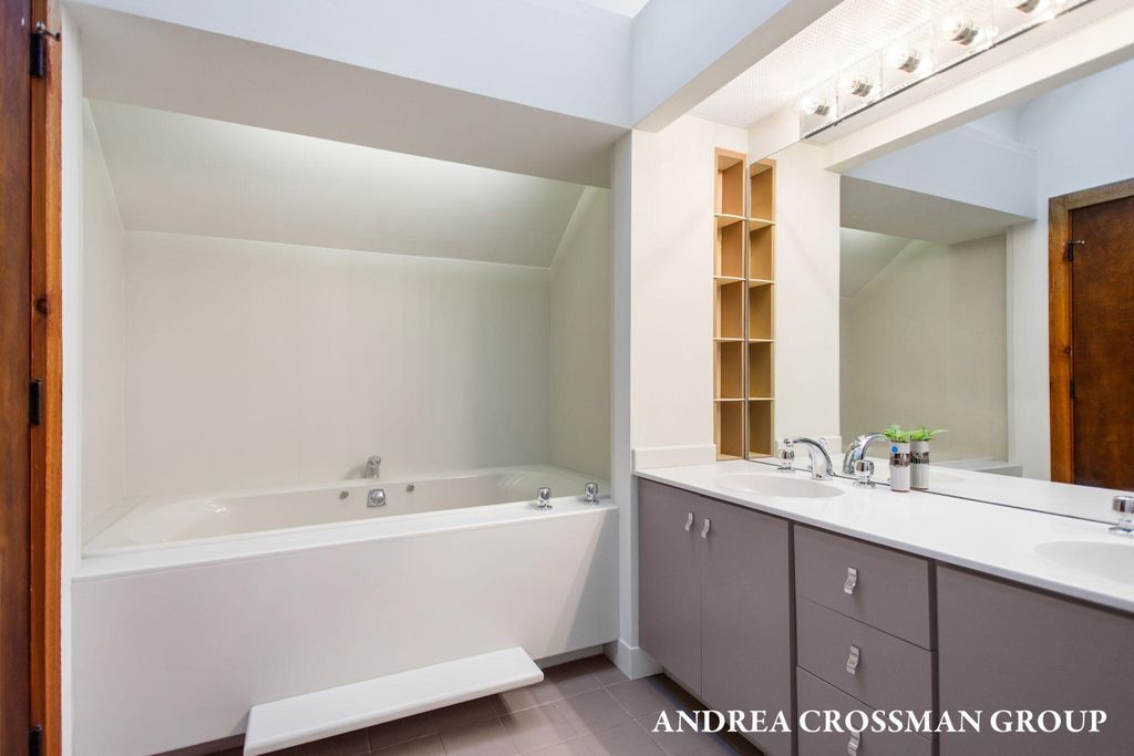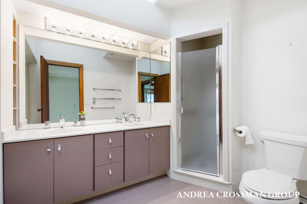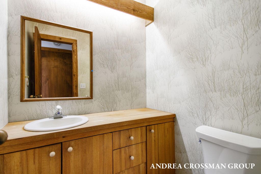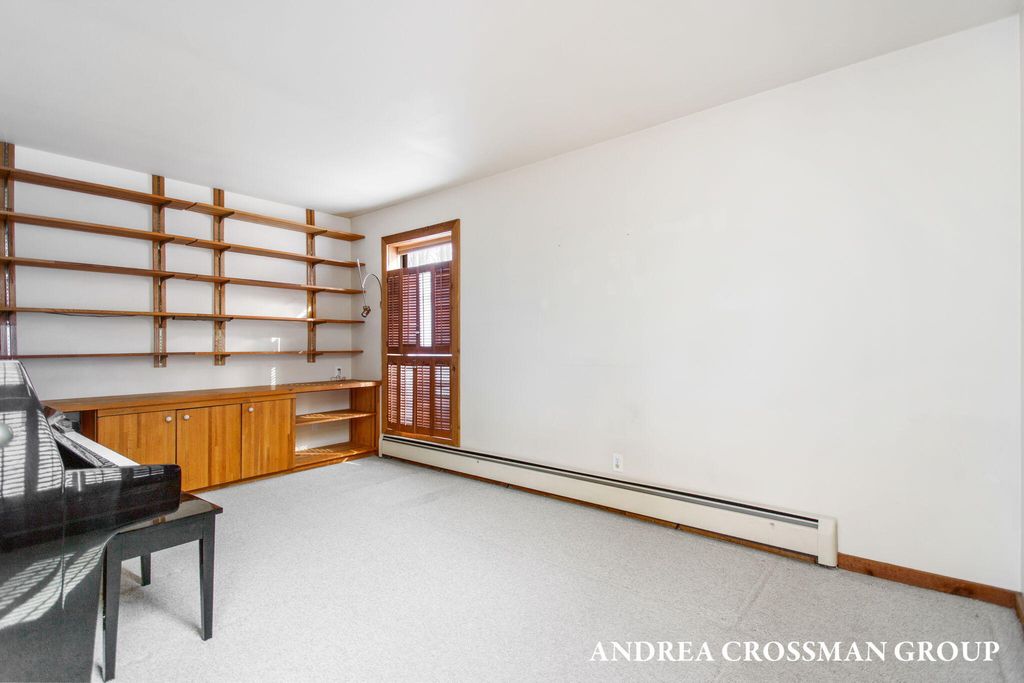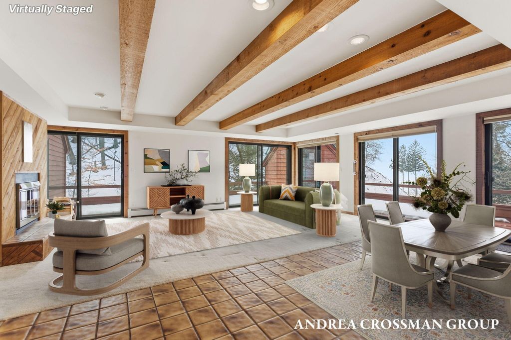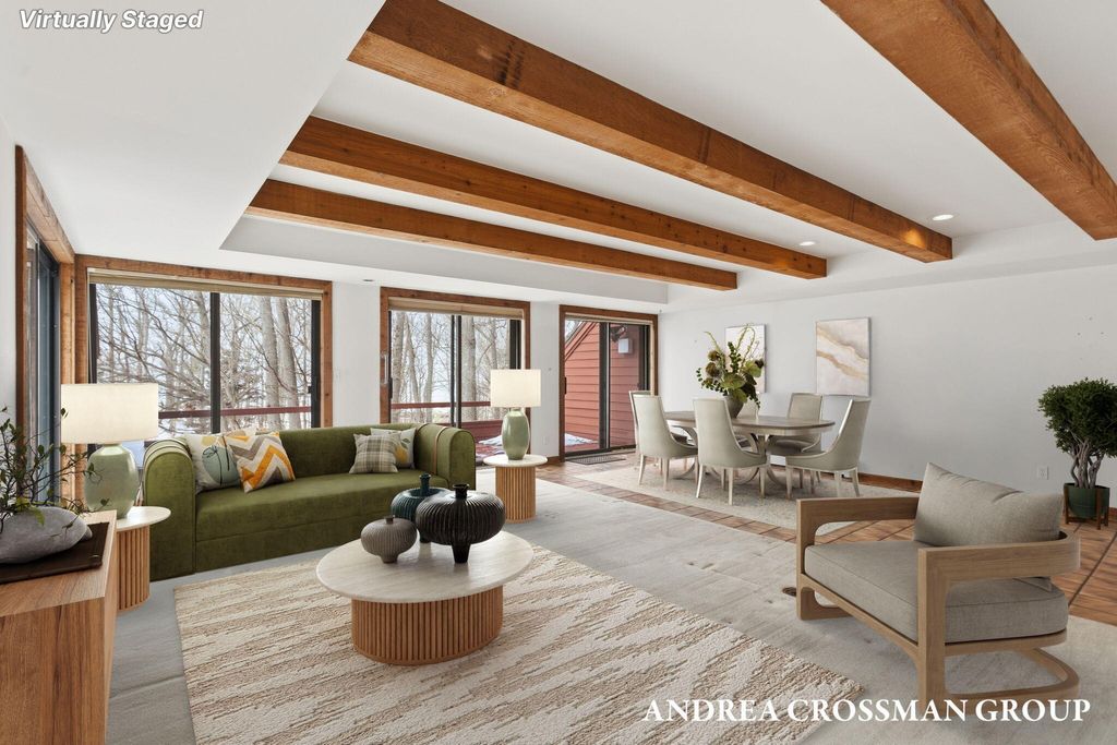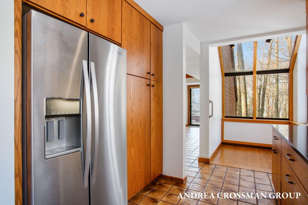 Lake views, private setting, and association beach access directly across the street highlight this ideally located home on the scenic N Shore Estates Road. Enjoy the benefit of a lakeside setting on the east side of the private road while still capturing the lake views and great association beach access just across the road to the sandy Lake Michigan shoreline along a low bluff. Set back among the trees on a private and picturesque lakeside road, this contemporary 1980s home offers a distinctive design with an elevated main level, open living and dining area with fireplace, vaulted breakfast nook surrounded by windows, and a lakeside and southern deck for outdoor living and sunset watching. The upper level features three bedrooms, including a lakeside primary suite with walk in closet, full bath, and sunroom with rows of windows that frame both the lake and surrounding woods. Fantastic location with private association beach stairs just steps away.The walkout lower level includes a two stall garage, workshop area, and half bath. The main level also offers a bedroom, office, and additional half bath. Being sold as is, this is a great opportunity in a premier lakeside location to create your own Lake Michigan retreat.