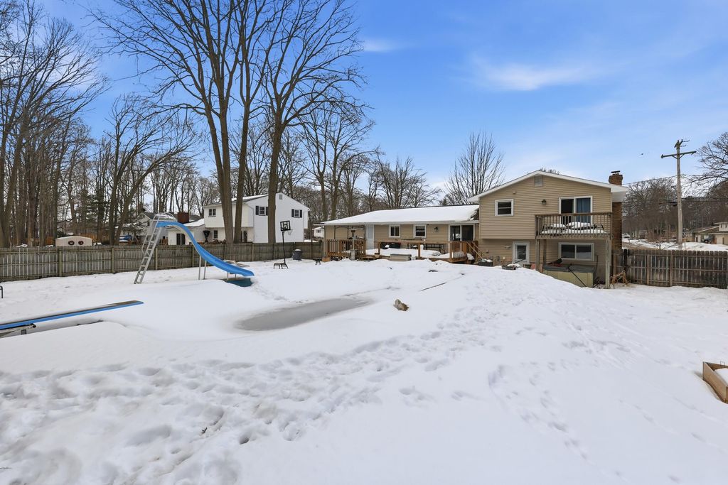 Welcome to this beautifully maintained tri-level home in the heart of Norton Shores! Completely renovated just 12 years ago, this 4-bedroom, 2-bath residence offers the perfect blend of comfort, functionality, and style. The spacious layout provides multiple living areas filled with natural light, a cozy fireplace for Michigan evenings, and a dedicated home office ideal for remote work or study. The heated garage adds year-round convenience, while the fenced backyard is truly a private oasisa"featuring an in-ground pool with slide and diving board, perfect for summer entertaining. Tucked away in a quiet setting yet close to everything you need, this home offers the best of both worlds.