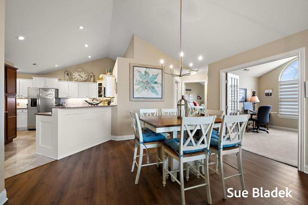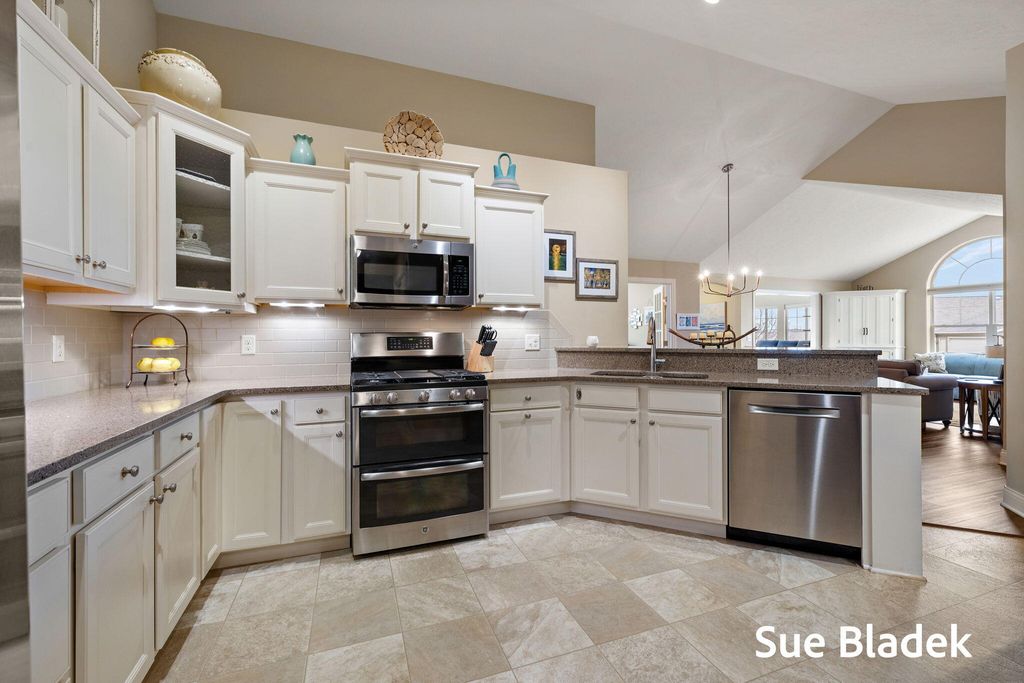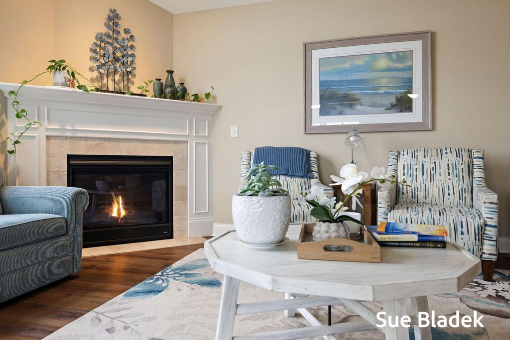 Enjoy the convenience of maintenance-free living at the Villas of Holland. This two-bedroom, two-bath condo provides a true zero-step floor plan designed for accessibility and comfort. Located adjacent to Paw Paw Park, you have immediate access to miles of paved walking trails and local nature views.The interior features a spacious kitchen with quartz countertops, stainless steel appliances, and a custom buffet with a built-in wine rack. This space flows naturally into a dedicated dining room and a living room centered around a gas fireplace. Matching quartz surfaces are found in both full bathrooms, maintaining a consistent quality throughout. The layout also includes a den and a bright four-season sunroom, providing extra living space for any time of year. For organization, the home includes a dedicated laundry room and a separate storage room, offering plenty of space without the need for a basement.Outside, the home features a patio perfect for relaxing or entertaining.The HOA fee covers water, sewer, and trash, as well as professional landscaping and snow removal to your front door. Residents also have access to the community clubhouse, fitness center, and heated outdoor pool. This is a well-maintained, move-in-ready home in one of Holland's premier communities.