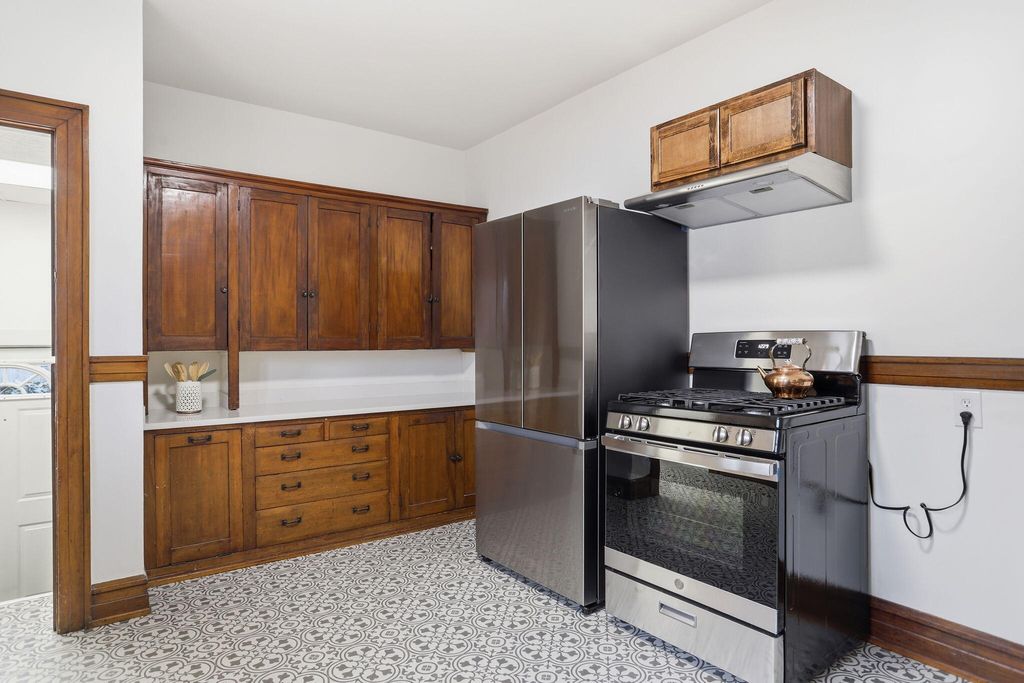 Charming 3-bedroom, 1-bath home full of character and thoughtful updates throughout! Step inside to find beautifully refinished wood floors, stunning original woodwork, and fresh paint paired with new light fixtures that create a bright, inviting feel. The vintage kitchen blends timeless charm with modern touches, featuring quartz countertops, new flooring, and brand-new stainless-steel appliances. The updated bathroom offers added convenience with a low-threshold shower, making it both stylish and accessible.Outside, enjoy a fully fenced-in yard--perfect for pets, play, or relaxing evenings--along with a 2-car detached garage providing ample storage and parking. This home is the perfect mix of classic details and modern updates, ready for its next owner to move right in!Buyer and buyer's agent to verify all information.