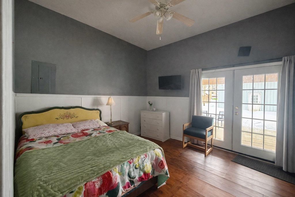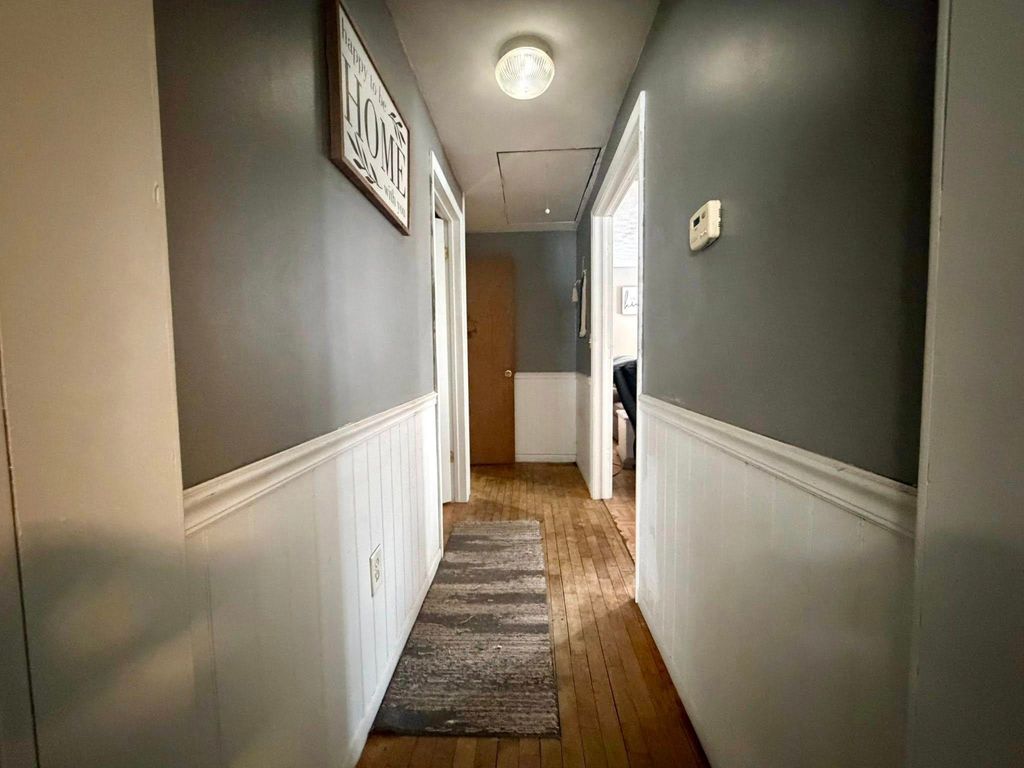 Cozy home in the Village of Kalkaska offering 2 bedrooms, 1 bath, and over 1,200 square feet of comfortable living space. Inside you will find a spacious kitchen, bright living area, and a practical layout that works well for first time buyers or those looking to simplify. The primary bedroom features hardwood floors, while the remainder of the home offers a mix of laminate and luxury vinyl plank flooring. The bathroom includes both a jetted tub and separate shower, and natural gas forced air heat provides efficient comfort year round. Outside, the 32x40 pole building with concrete floors and a 12 foot door offers excellent flexibility for storage, workshop space, hobbies, or recreational equipment. The level lot also includes a fenced yard, patio area, and covered porch. With municipal water and sewer, metal roof, and a convenient in town location, this property offers functionality and room to personalize over time. Located approximately 30 minutes from Traverse City, Cadillac, and Gaylord, this home provides an easy commute while allowing you to enjoy small town living.