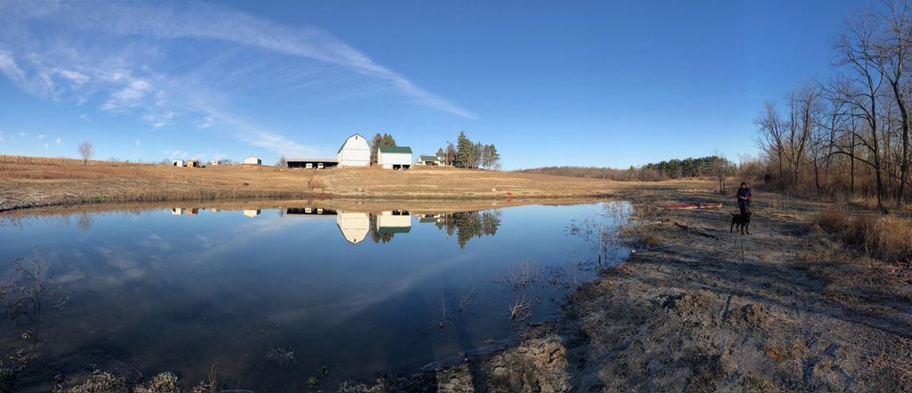 Welcome home to stunning Hilltop Farm. This historic homestead offers 20 rolling acres that include prairie meadows bursting with 50+ native wildflowers presenting waves of color from May-November, a 12' deep stocked pond, a fenced pasture home to 4 lady goats and several working barns. This property is alive with wildlife, including pheasant, turkeys, songbirds, waterfowl, and trophy whitetail deer. Originally built by Mr. Burmeister in 1881, this home has been lovingly transformed through a down-to-the-studs renovation and expansion that delivered all new plumbing, electrical, and high-efficiency boiler with zoned heating and cooling providing modern comforts amidst timeless character. A chef's kitchen is this home's centerpiece with gorgeous, custom walnut cabinetry, a Viking range and hood, a huge center island for gathering around and large dining space only steps from your classic farmhouse porch with swing to take in the scenic beauty. With plenty of space to spread outthe first floor boasts a cozy library with wood stove and a grand family room with vaulted ceiling, ledgestone and gas burning fireplace with access to a generous ledgestone patio for summer dining. Upstairs you'll find 4 generous bedrooms with a full bath, attic space, and a expansive primary suite that boasts an incredible walk-in closet with quality built-ins and lovely ensuite bath. Two basements offer plenty of storage, work-out space, and a workshop - your hobby awaits. The property is splittable, so if you're dreaming of a family compound - this could work. With all the options this property affords you'll surely be living your best life here - come see it today!
